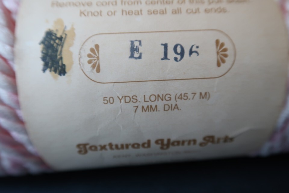 Vintage Elefant Twist Yarn Pink and White 50 Yards 7mm for Macramé Crafts 1976