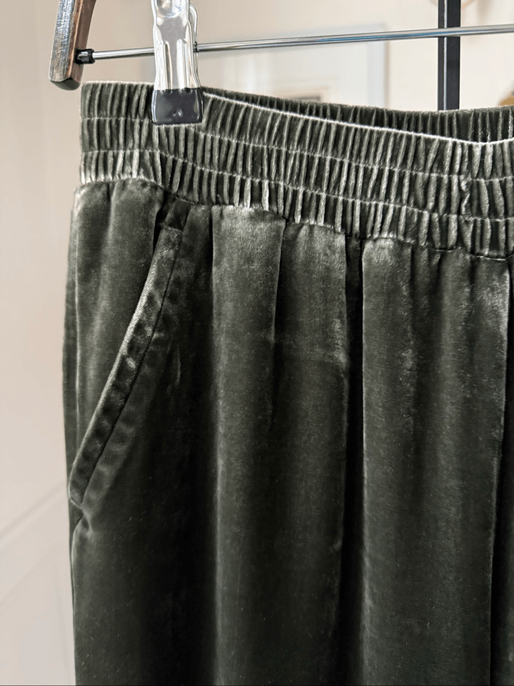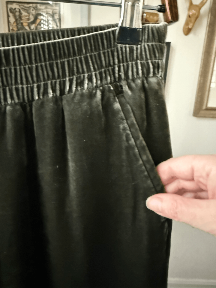Garnet Hill Moss Ivy Green Silk Velvet Wide Leg Pull On Pants XS