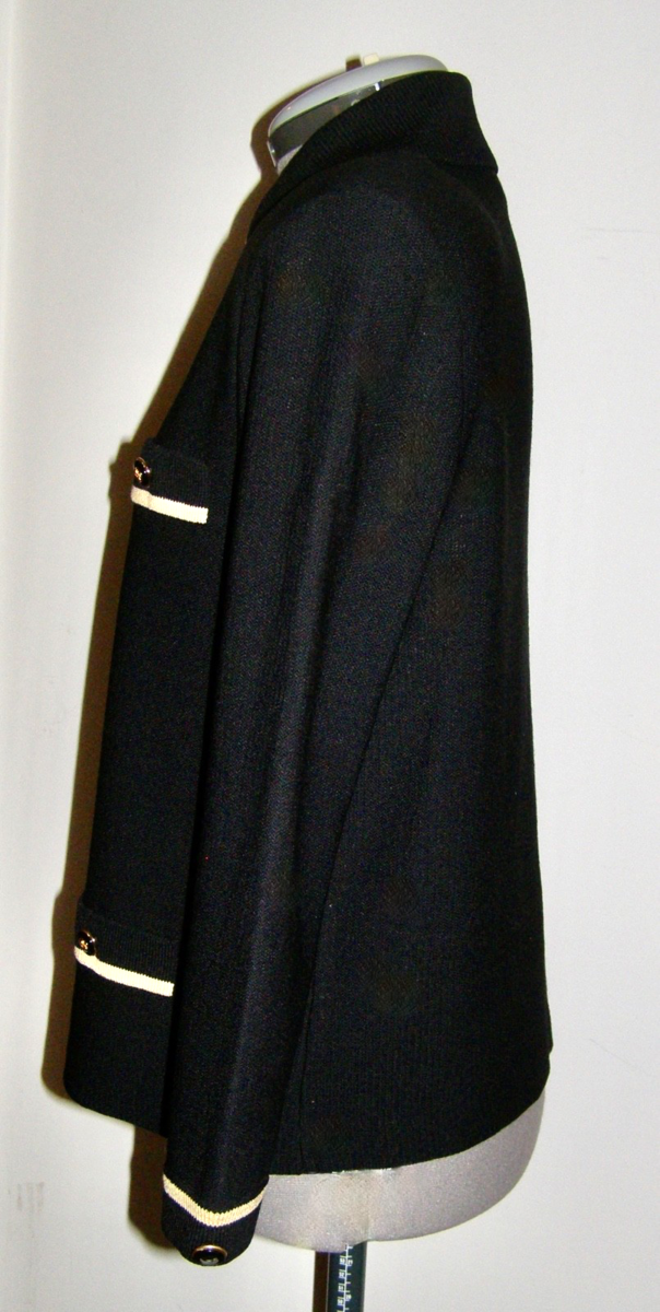 BLACK KNIT JACKET w/ BEIGE KNIT BORDERS |