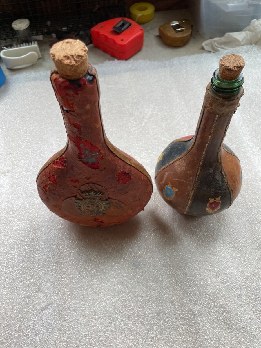 Two (2) Vintage Leather Wrapped Bottle's and similar items