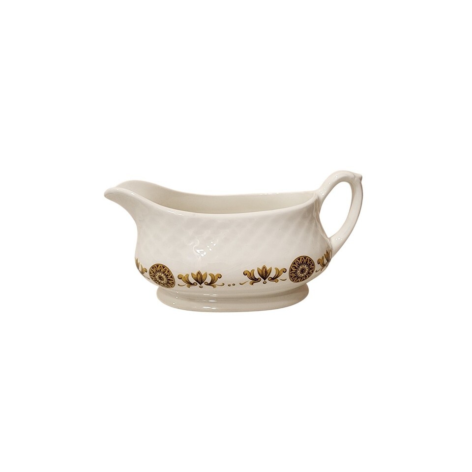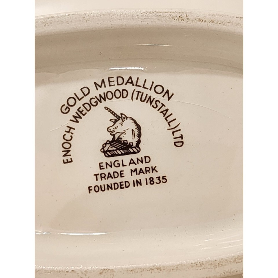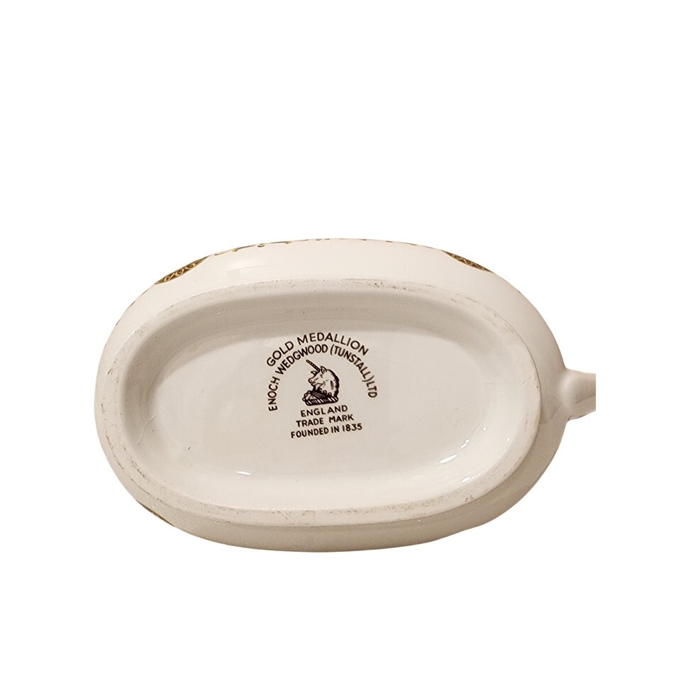 Keywords: Enoch Wedgwood, Tunstall, Gold Medallion, Gravy Boat, Sauce Boat, Vintage Gravy Boat, Ceramic Gravy Boat, England, Unicorn, Collectible, Dining, Serving Dish, Tableware, Mid Century, Retro