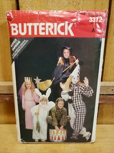 Butterick 1987 Children's Halloween Costumes #3372 Sz A (S,M,L) Clown Witch etc.