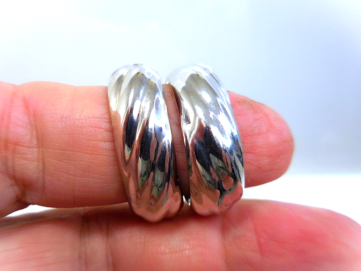 These Milor Bronze Italy Silver Tone Omega Back Oval Hoop Earrings feature a sleek and stylish design that is perfect for adding a touch of elegance to any outfit. The Omega closure makes them easy to put on and take off, while the white gold overlay finish gives them a sophisticated look. They measure about 1" long and 1/4" wide and are in excellent condition that appear very close to new, very clean and have a glossy mirror like finish. These earrings are versatile and can be worn for both casual and formal occasions. Made in Italy by the reputable brand Milor, these earrings are of high quality.