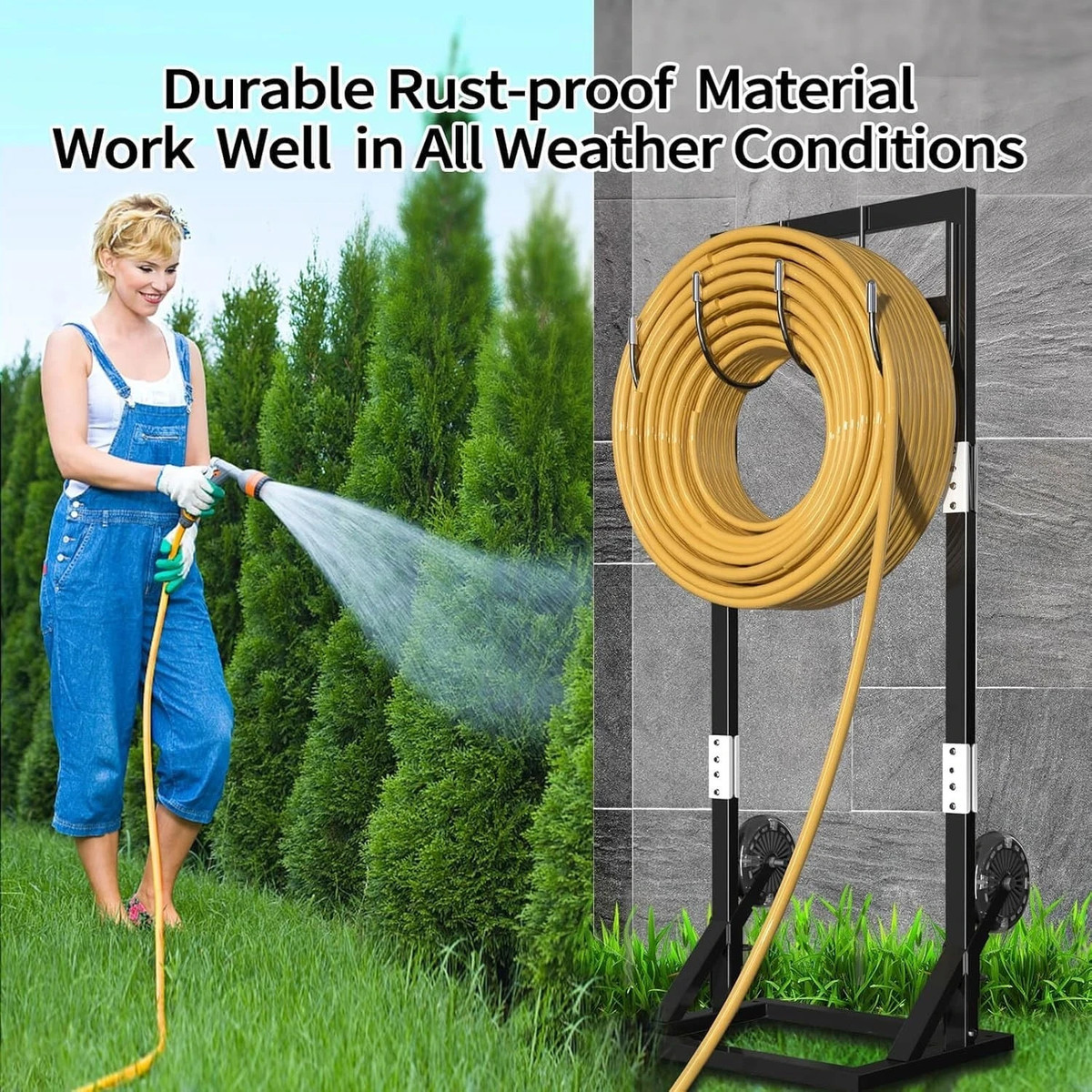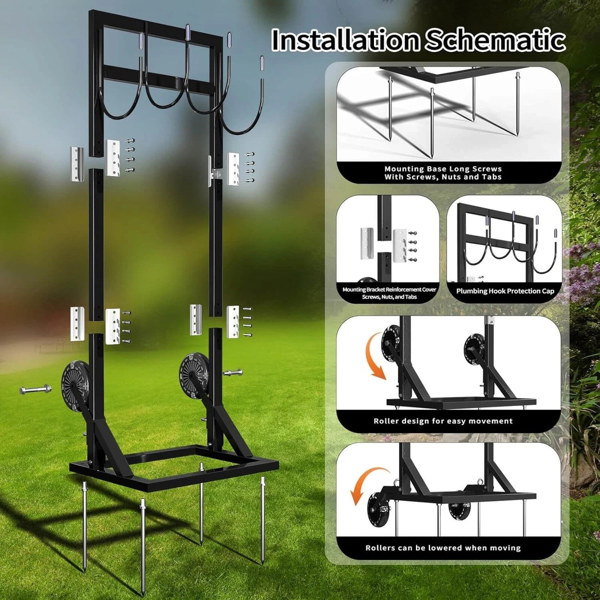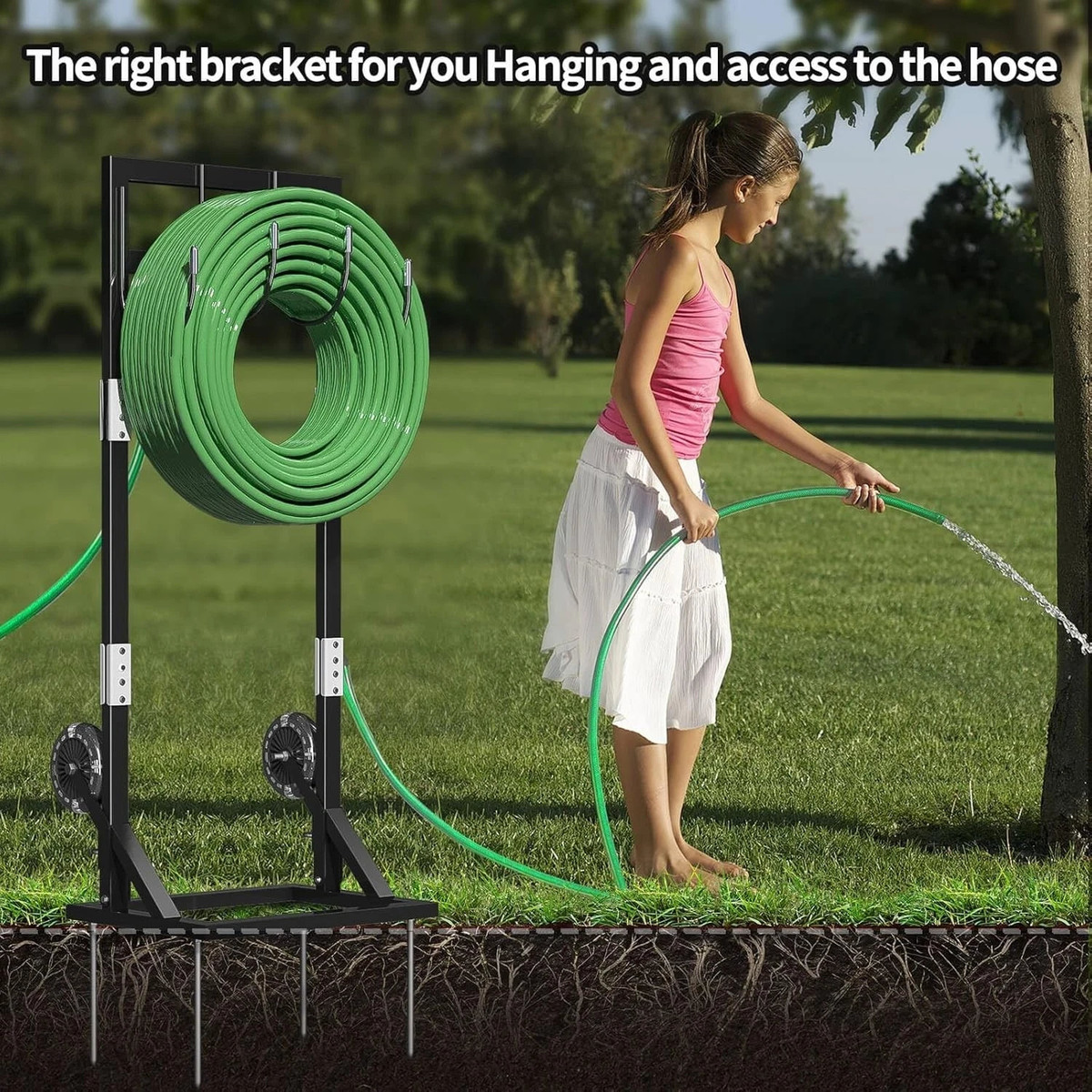 Freestanding Garden Hose Holder Stand Heavy Duty Metal Ground Stake 4 Anchoring Spikes Yard Storage