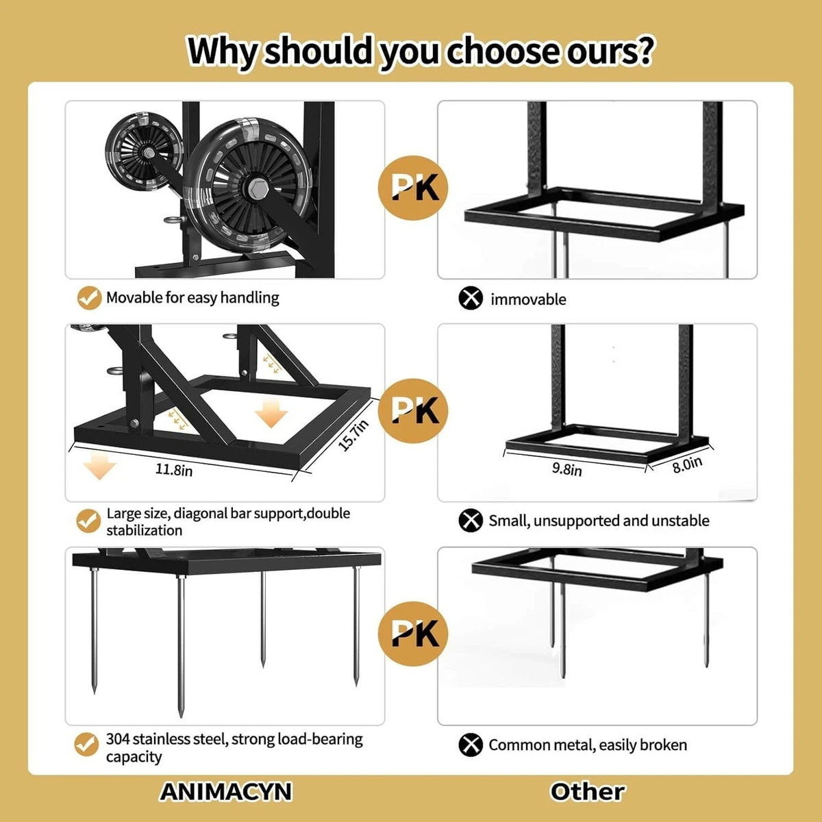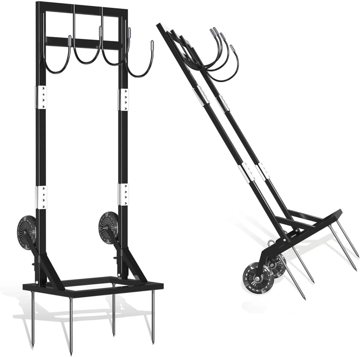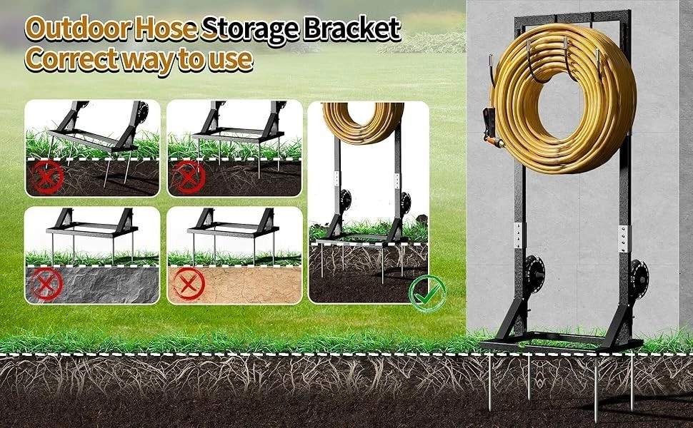 Freestanding Garden Hose Holder Stand Heavy Duty Metal Ground Stake 4 Anchoring Spikes Yard Storage