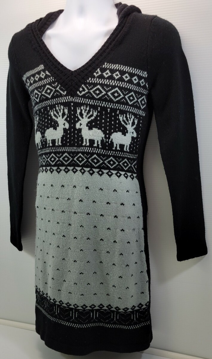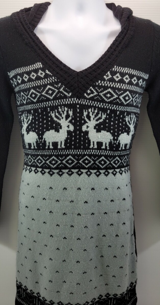 MM) White Mark Couture Collection Women Medium Black Christmas Reindeer Sweater