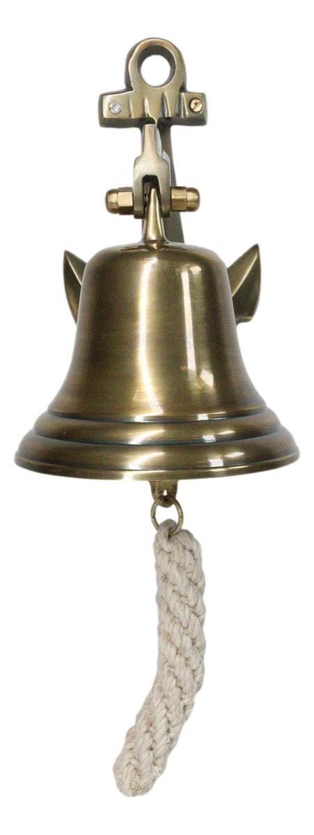 ? Add a touch of classic maritime charm to your home or outdoor space with this Antiqued Brass Color Finish Sailor's Anchor Bell. Featuring a beautifully detailed anchor design and a rich antiqued brass look, this lightweight yet durable aluminum bell delivers a clear, resonant ring that's both functional and decorative. Perfect for nautical-themed decor, patios, gardens, entryways, or as a distinctive dinner bell, it brings timeless seafaring style and coastal character wherever it's displayed.