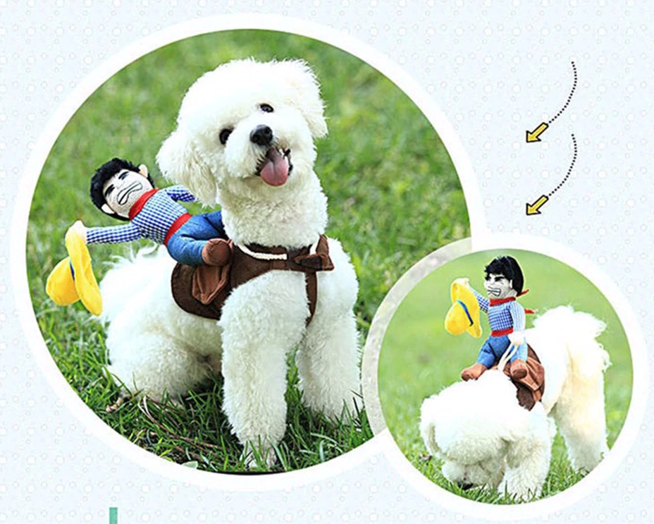Riding Cowboy Funny Novelty Halloween Dog Costume For Small Dogs gag gift cute