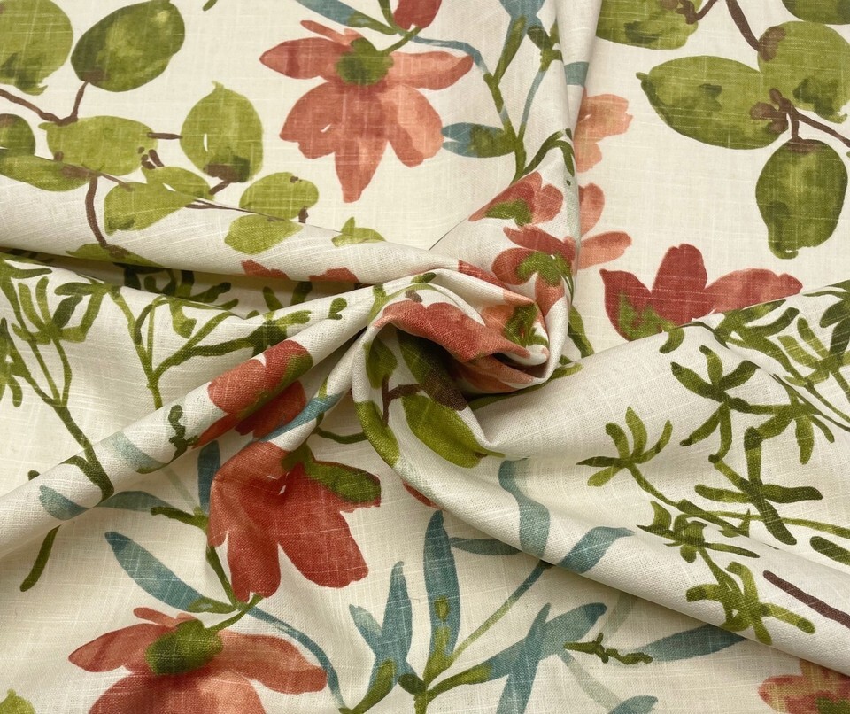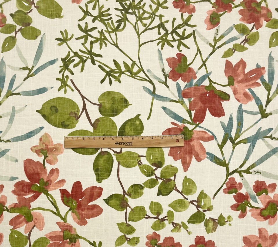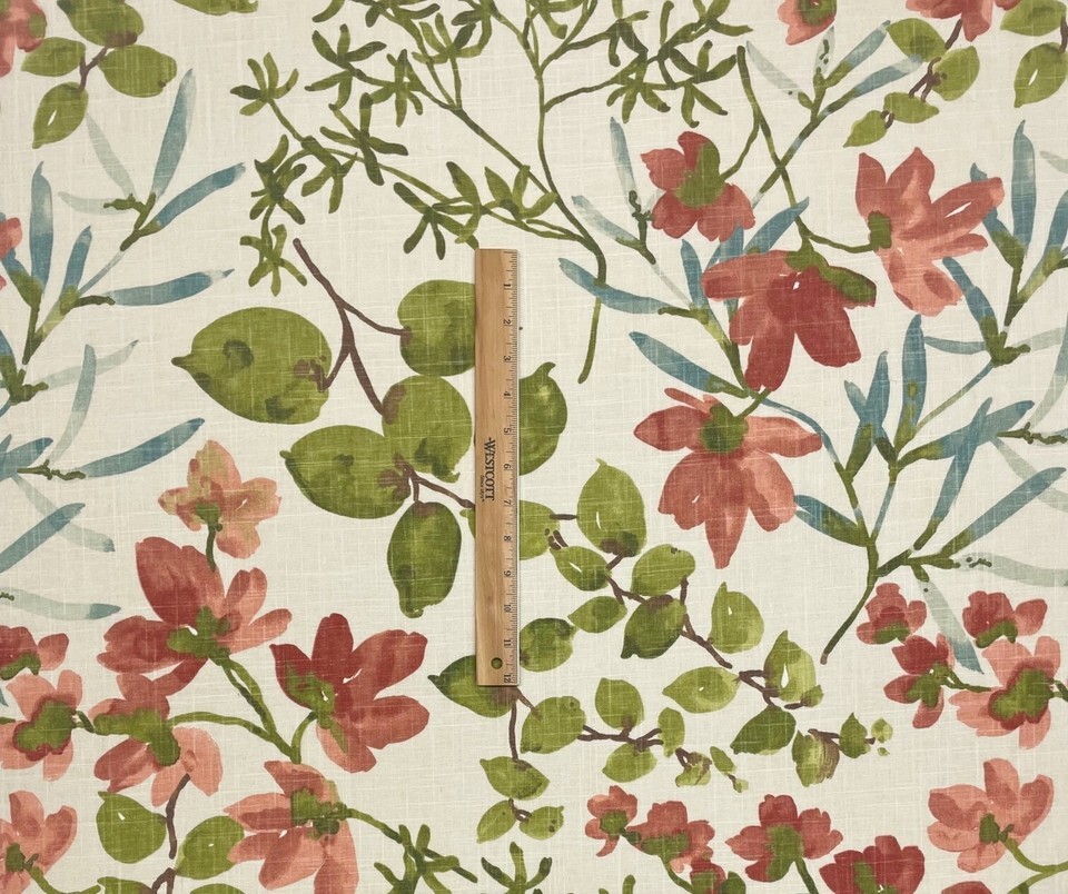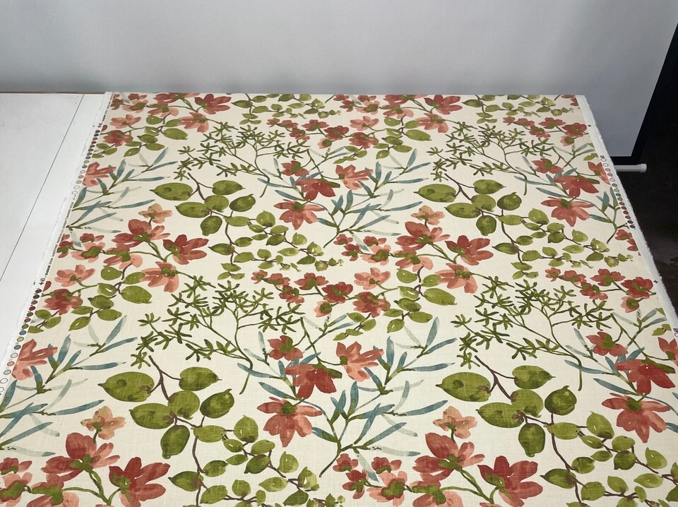 BALLARD DESIGNS ALESIA GREEN FLORAL VINE MULTIUSE LINEN FABRIC 1 YARD 54"W