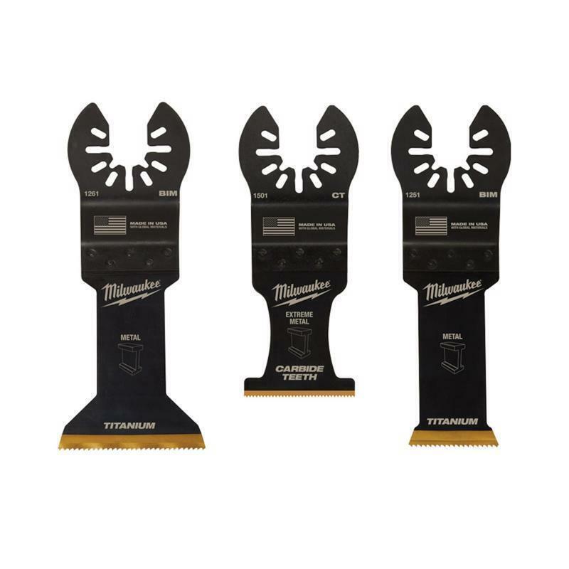 WHAT'S INCLUDED: (1) 1-3/8" Titanium Enhanced Carbide Teeth Extreme Metal Blade, (1) 1-3/4" Titanium Enhanced Bi-Metal Metal Blade, (1) 1-1/8" Titanium Enhanced Bi-Metal Metal Blade
