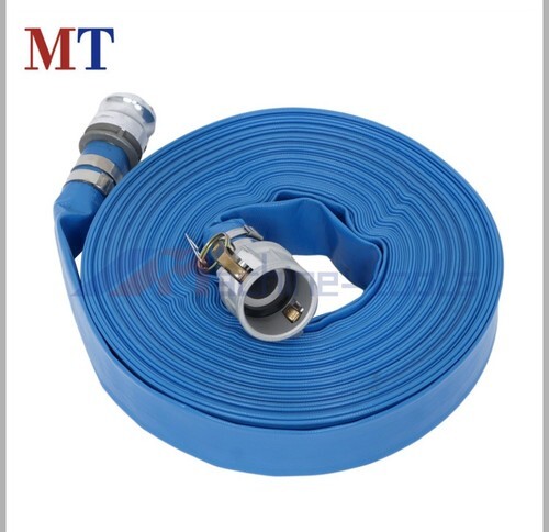 General purpose reinforced PVC lay-flat water hose designed for open end discharge service.
