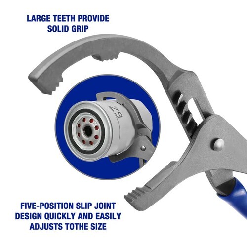 The Milwaukee PVC/oil filter pliers feature forged jaws for lasting durability through tough JOBSITE applications. The jaws are designed with a 3.5 in. capacity for a multitude of common applications including, PVC fittings, small sink basket strainers, oil filters, and more. The PVC/oil filter plier handles are a compact 9 in. long but boast the jaw capacity of much larger pliers giving them maximum versatility.