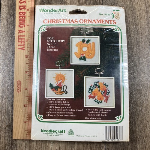 This kit features a holiday theme and is perfect for those who love to create unique and personalized holiday decorations. The ornament is 2.5" in size and is a great addition to any Christmas tree. Get creative and stitch your own personalized ornament with this WonderArt Christmas Traditions Ornament Trio Cross Stitch Kit.