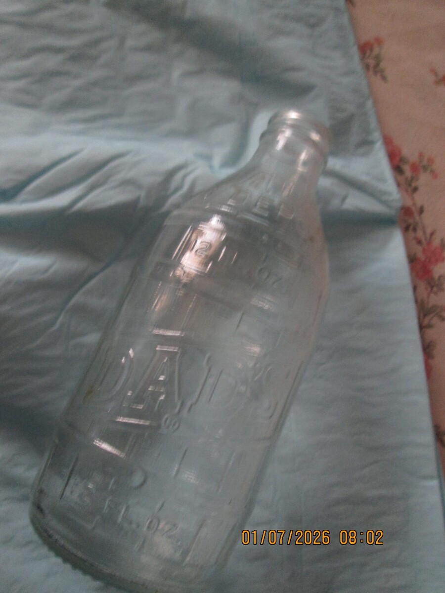 The Vintage Embossed Dad's Root Beer 12 Ounce Clear Bottle is a collectible soda bottle from the United States. This classic bottle features the iconic Dad's Root Beer branding and is made of clear glass, showcasing the unique embossed design. Perfect for collectors or fans of vintage sodas, this bottle holds 12 ounces of your favorite root beer and is a nostalgic piece of Americana. Enjoy a refreshing drink in style with this retro addition to your collection. If you have any questions, please content me. Thank you and GOD BLESS.
