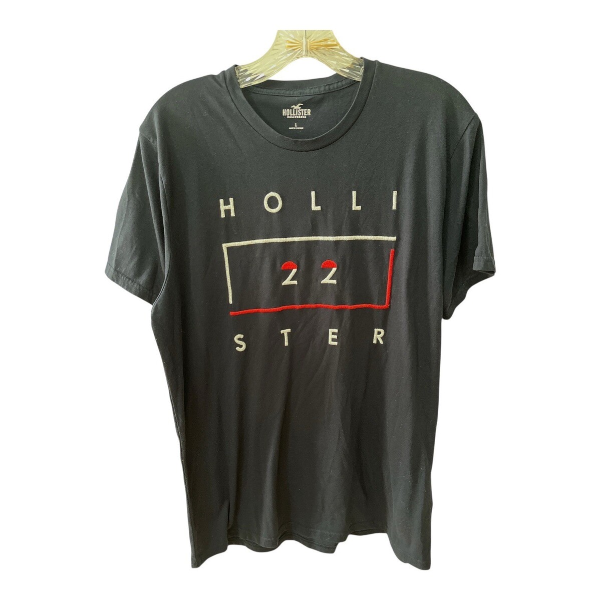 Hollister 22 Embroidered Logo T-Shirt Black Short Sleeve Crew Neck Tee Size L