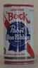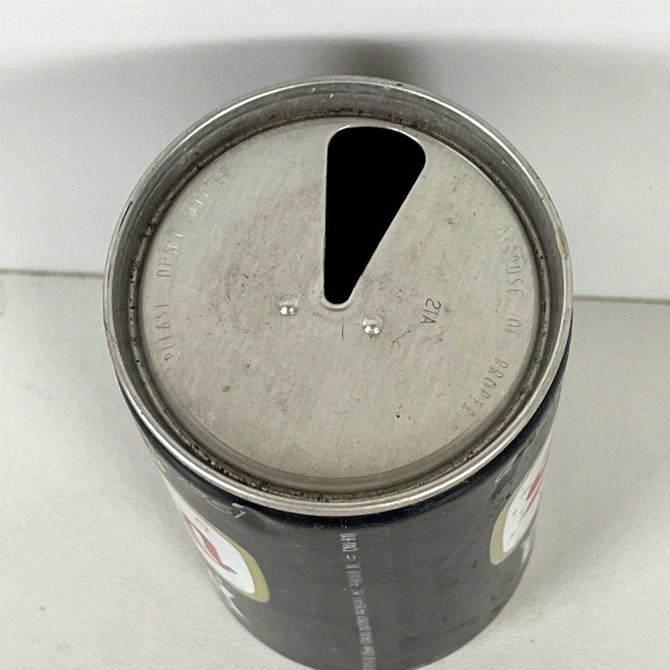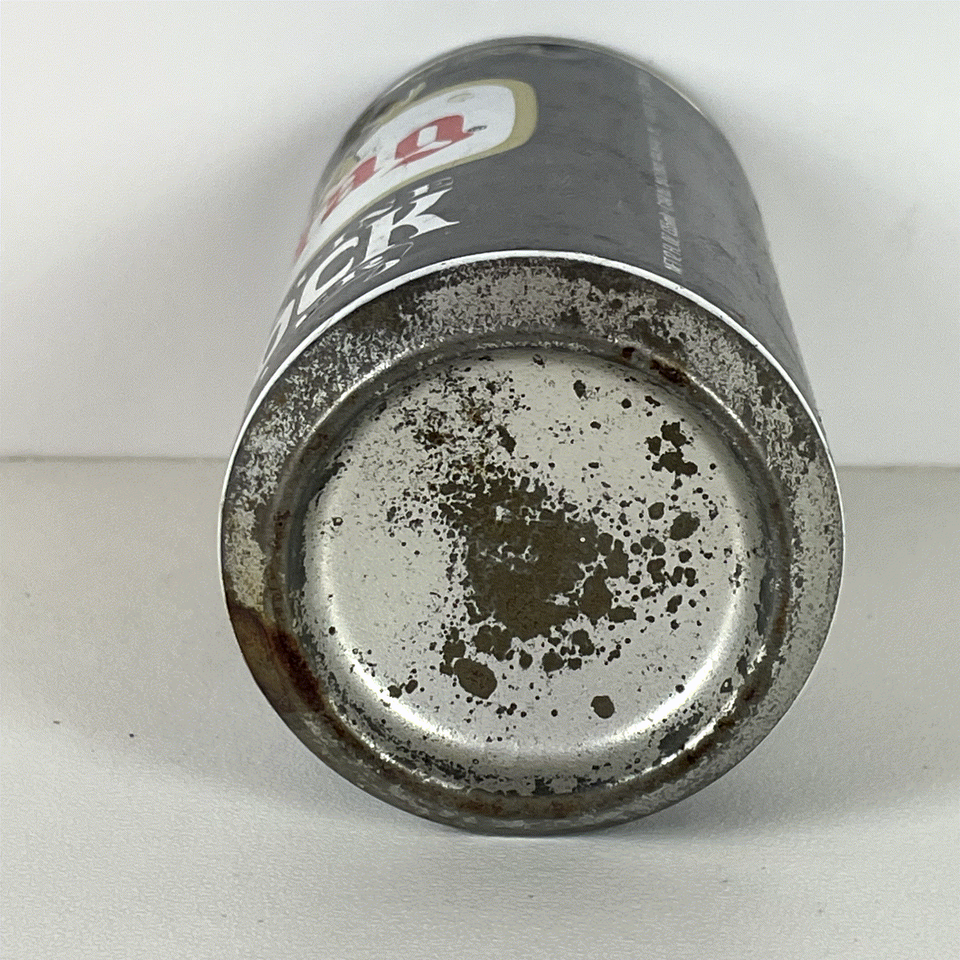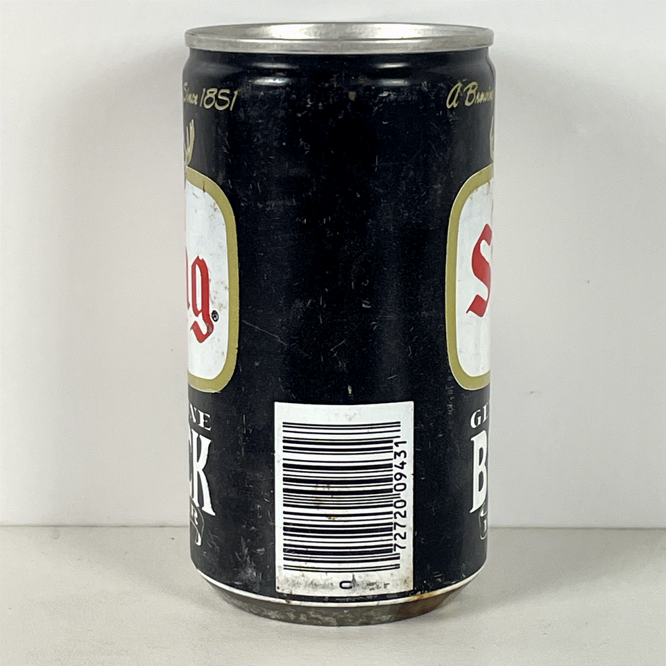 The can's design is simple yet distinctive, with a vintage flat top and a unique pour opening typical of mid-20th century beer cans. The black color scheme with white and red accents gives it a bold and timeless look that appeals to collectors and enthusiasts alike. Visible wear adds character, revealing its age and authenticity, while the barcode and manufacturer's marks on the side provide additional verification of its origin. A perfect addition to any breweriana collection, this Stag Genuine Bock can is a piece of American brewing history.
