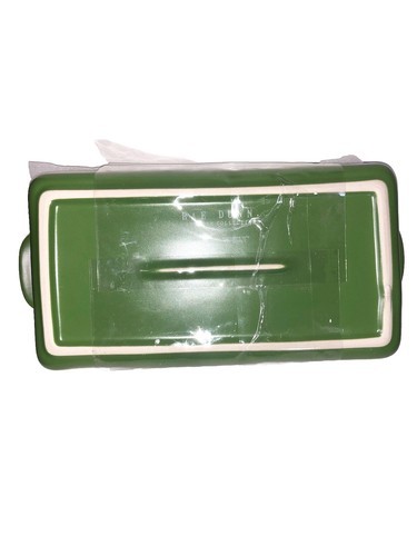 This NEW Rae Dunn Green Ceramic SHAMROCK Lidded Serving Baking Casserole Dish is a festive and functional kitchen item perfect for St. Patrick's Day. This dish is made of durable ceramic and porcelain materials, ensuring it can be used for both serving and baking. This dish is ideal for those looking to add a touch of green to their kitchen decor or to use as a decorative piece during the festive season.