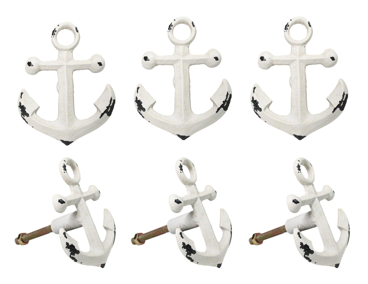 Set Of 6 Distressed White Marine Sailor Ship Anchor Cabinet Door Pull Knobs
