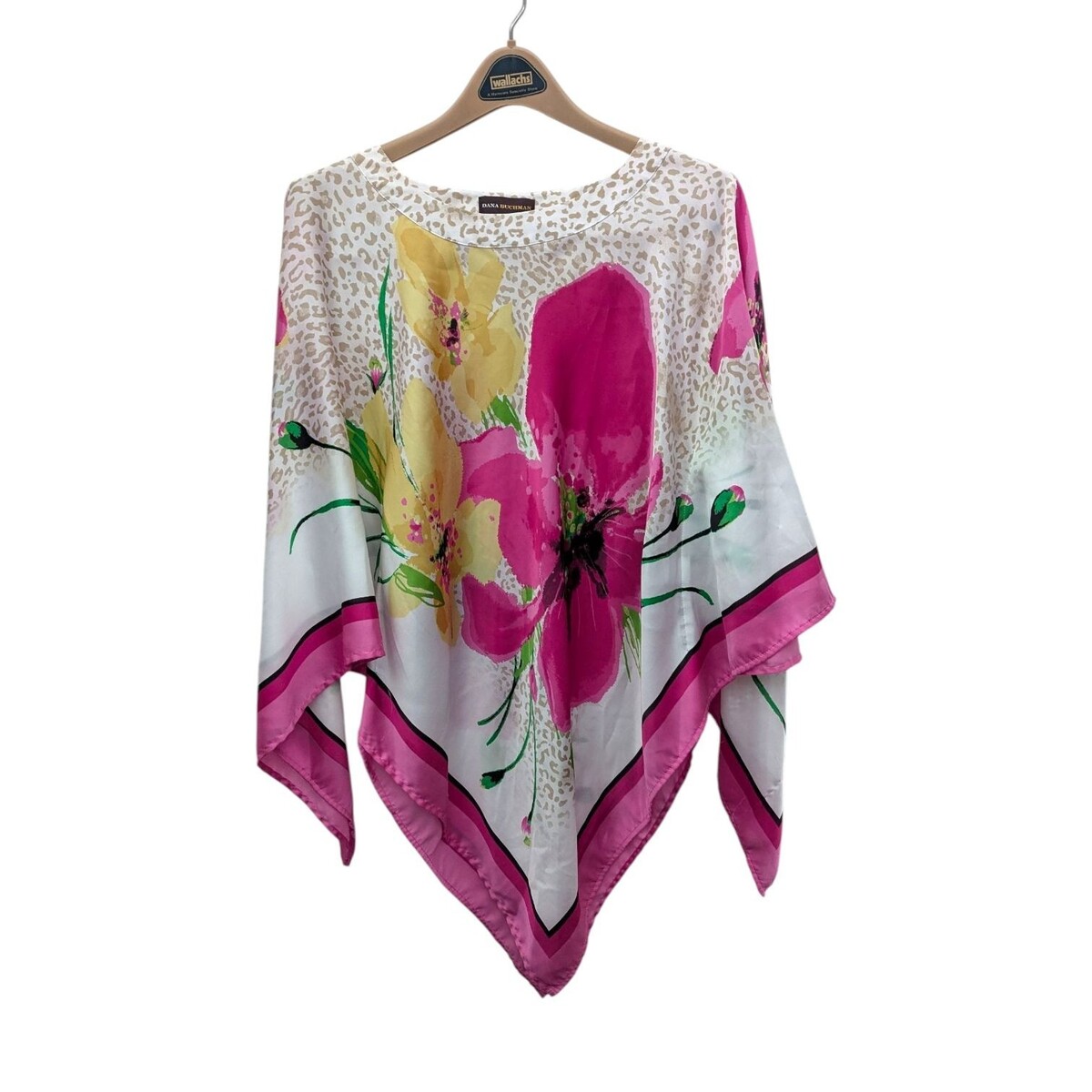 Dana Buchman Tropical Flowers Poncho Blouse Top Pink White Small S
