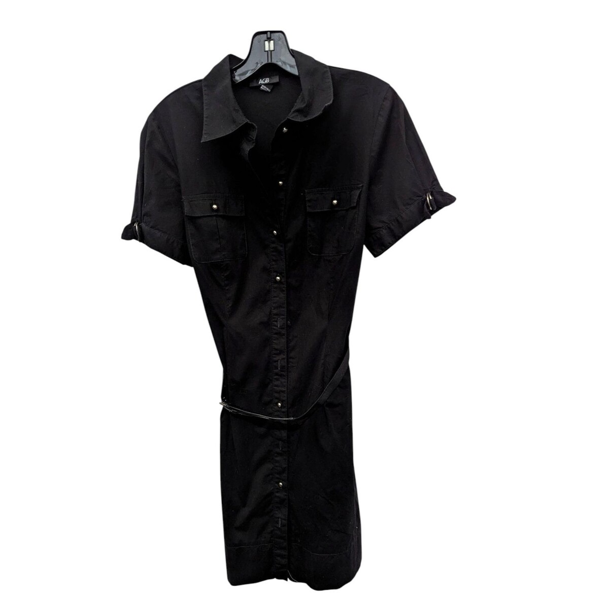 AGB Career Belted Shirt Dress with Roll Tab Sleeves Black Size 8 Medium