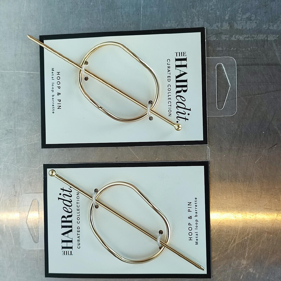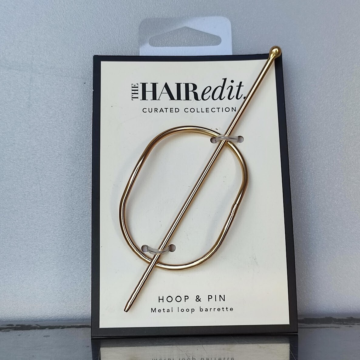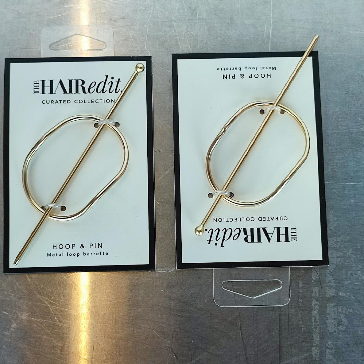 The hair slide is back and better than ever! The Hair Edit's beautiful two piece Hoop Pin gold metal loop barrette lends a sophisticated detail to your half-up or updo hairstyle. The sleek modern design is the ultimate finishing touch to both casual or dressy outfits and everything in between.