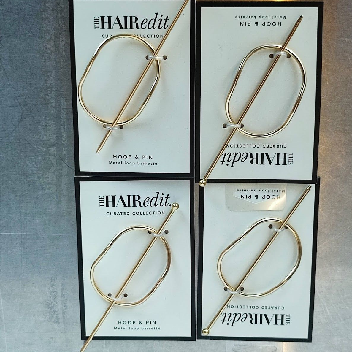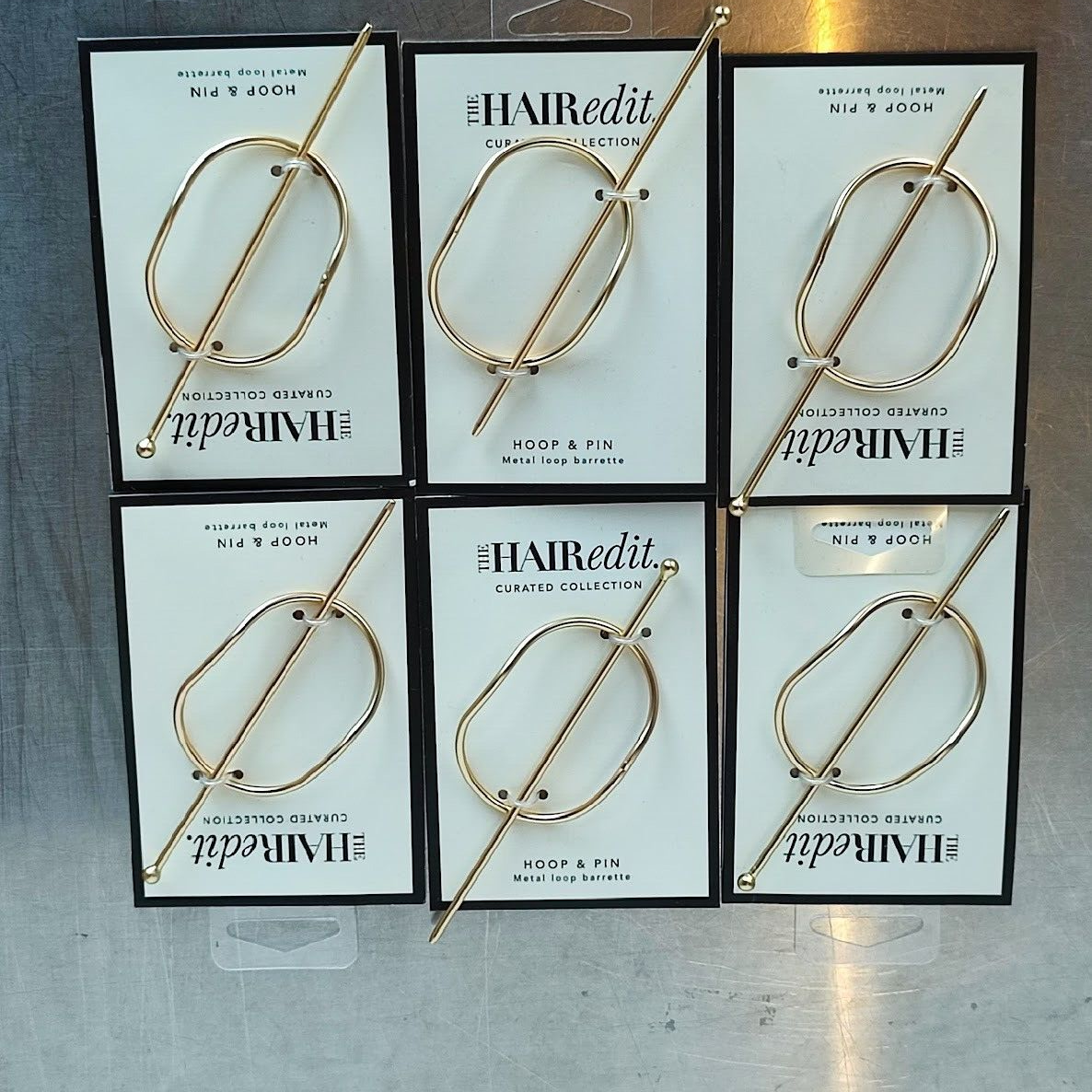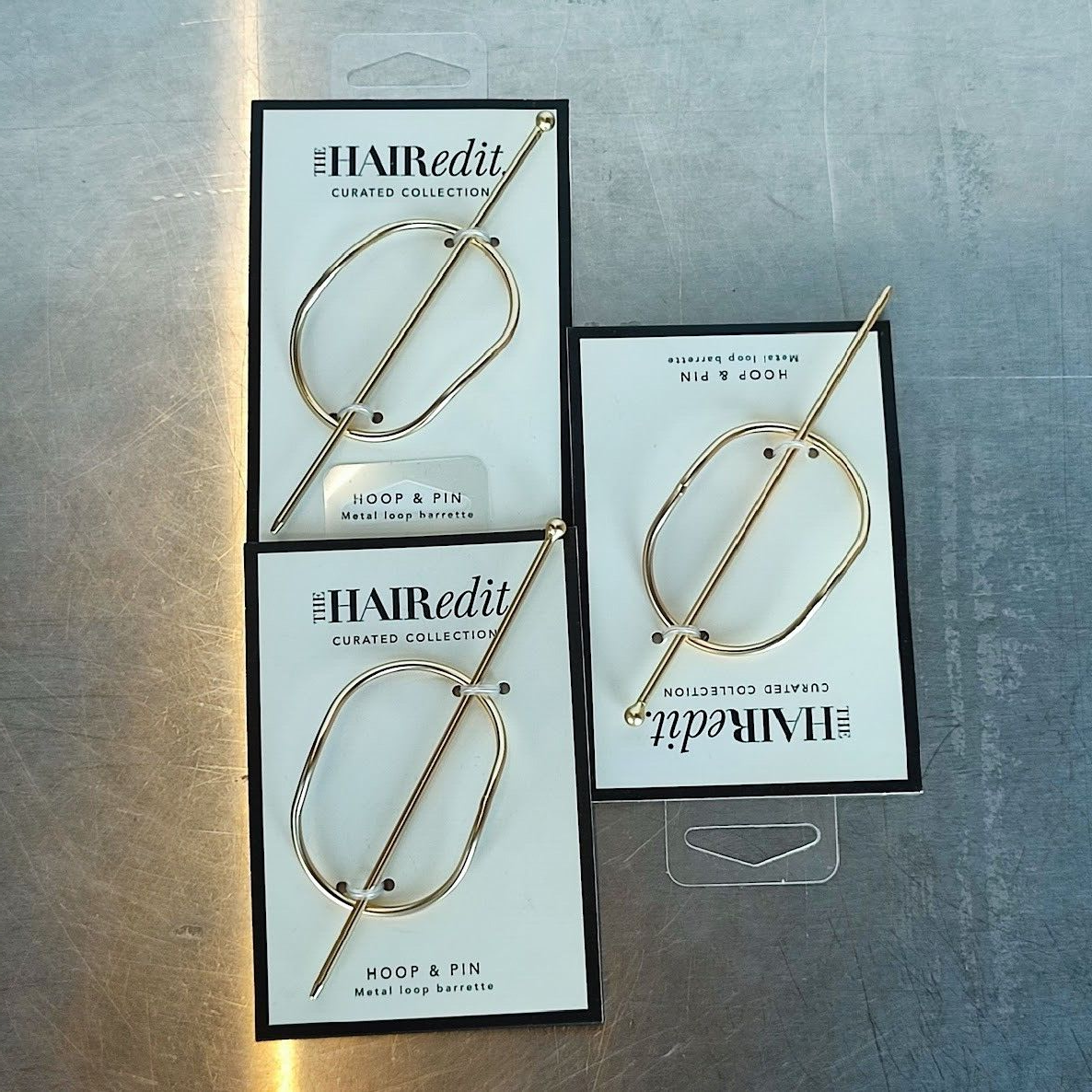 The hair slide is back and better than ever! The Hair Edit's beautiful two piece Hoop Pin gold metal loop barrette lends a sophisticated detail to your half-up or updo hairstyle. The sleek modern design is the ultimate finishing touch to both casual or dressy outfits and everything in between.