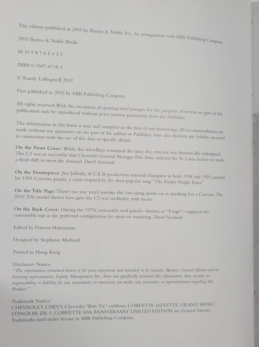 *L) Corvette: Fifty Years by Randy Leffingwell (2005, Hardcover Book)