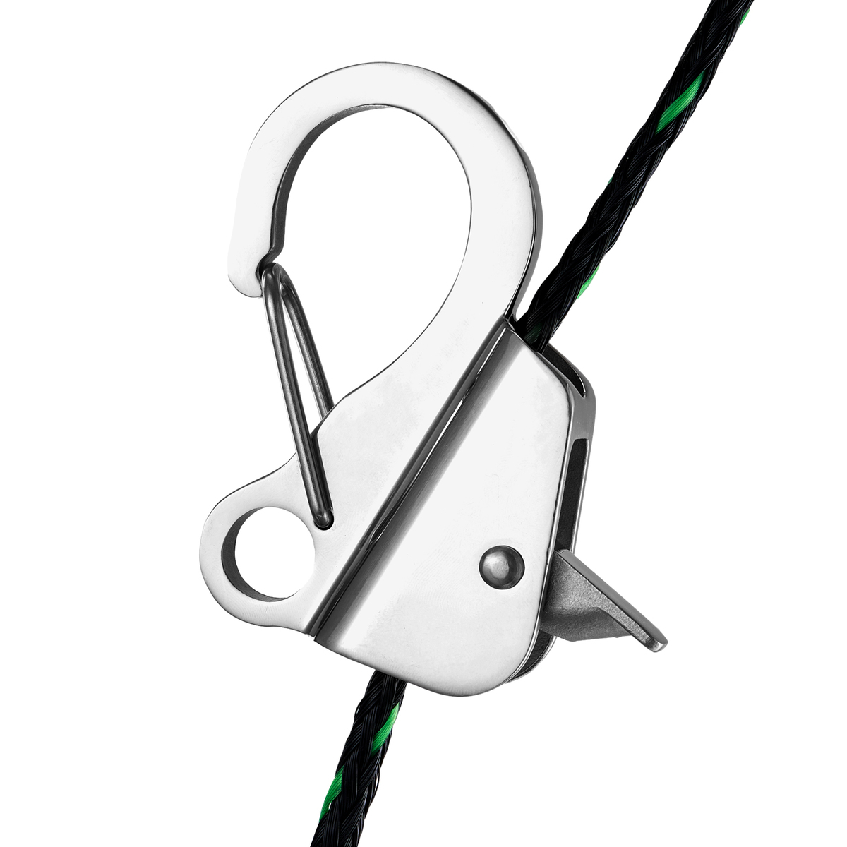 Easy to Use: Effortless operation with a push-down release mechanism; pushed down and released the hook lever, the anchor rope slides up/ down, and the boat anchor line clip will grip the anchor line at the desired position. Reducing the need for tying or untying. This knotless anchor system saves time during docking, making anchoring and towing easier.