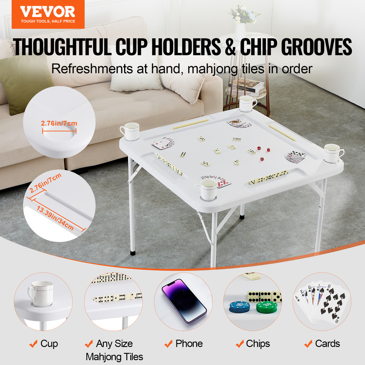 VEVOR Mahjong Table, 4 Cup Holders & 4 Chip Trays &1 Set Dominoes, 35.4 x 35.4in