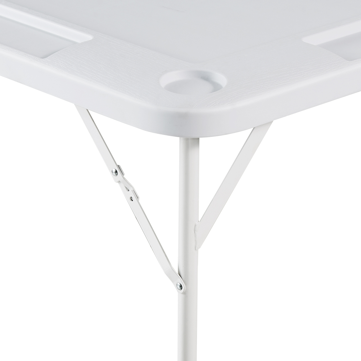 Sturdy and Durable: Our 4-player folding card table-top is made of high density polyethylene(HDPE), durable and waterproof. Its high-density seamless steel pipe is rust-resistant, while the non-slip foot pads enhance stability, reduce noise, and resist wear. With outstanding load-bearing capacity, it provides excellent stability during playtime.