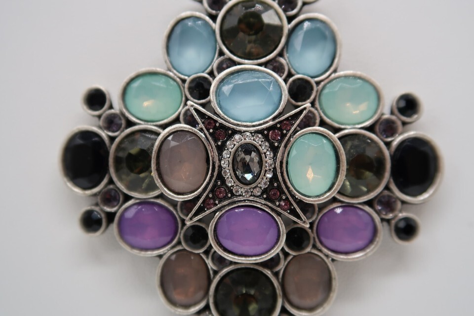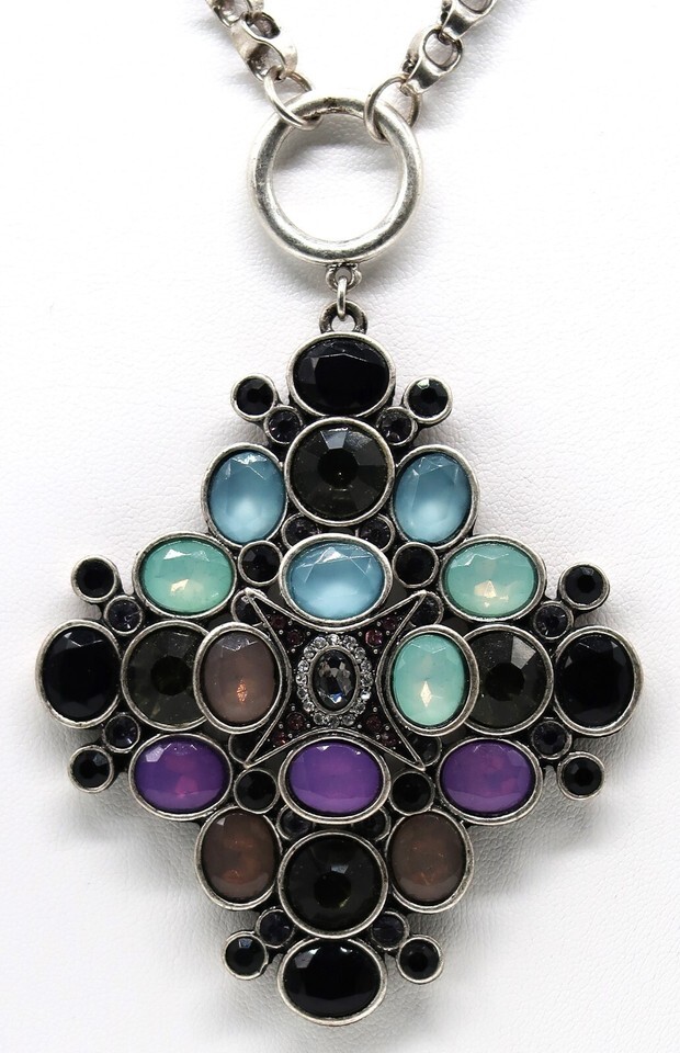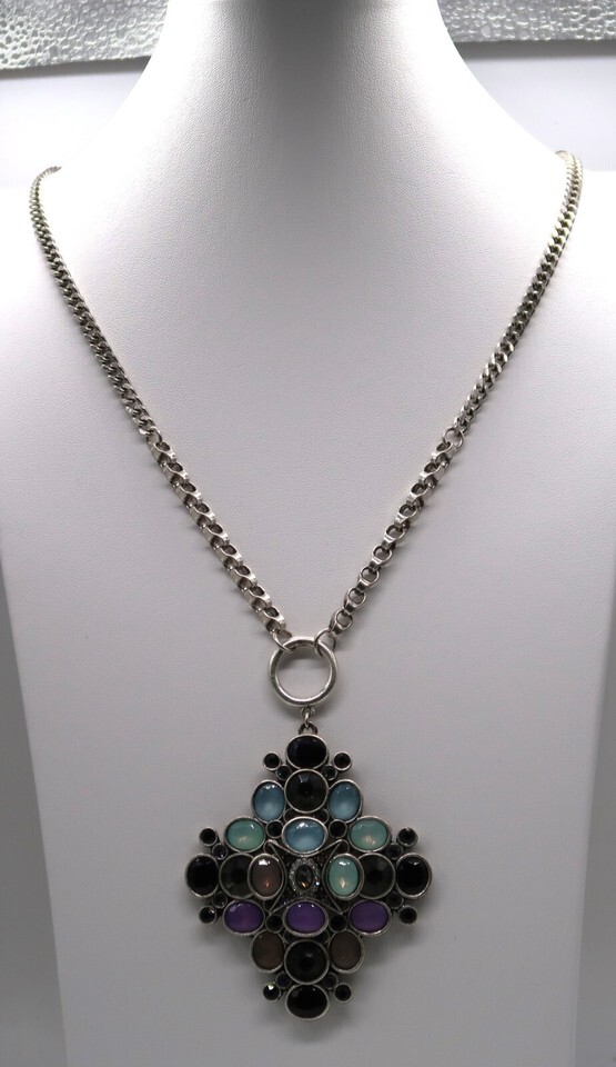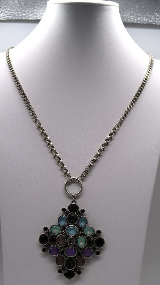 LOGO Lori Goldstein Silver Tone Necklace Pendant QVC Multicolor Blue Green Pink