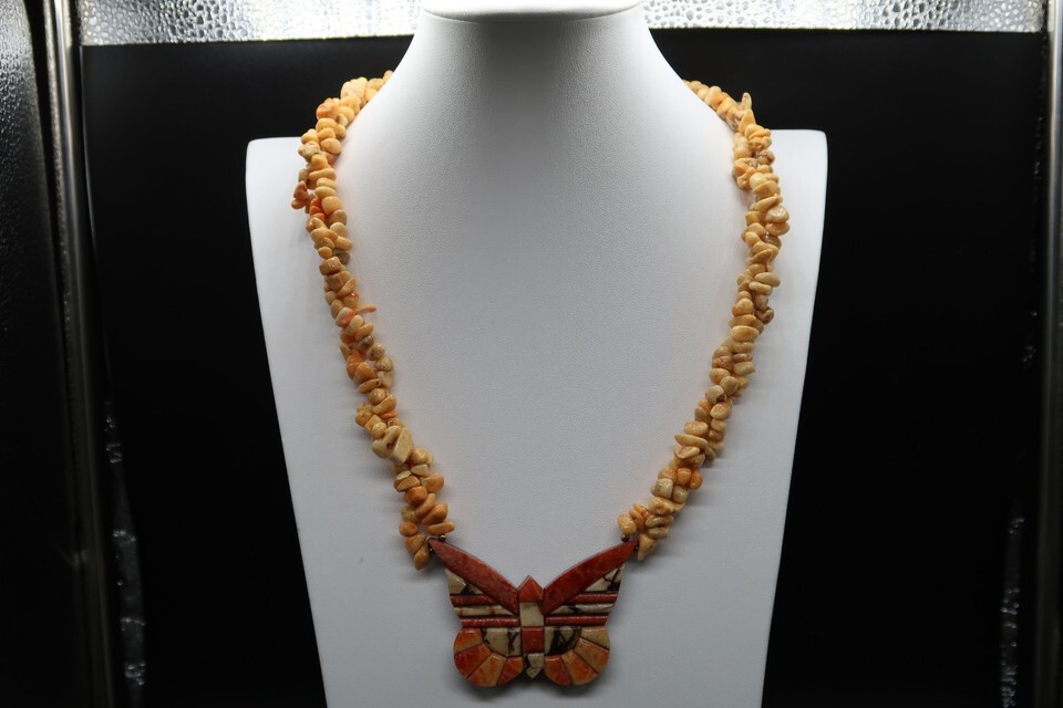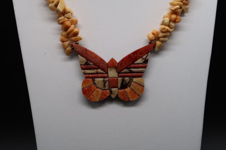 Vtg Beaded Necklace Butterfly Pendant Orange and similar items