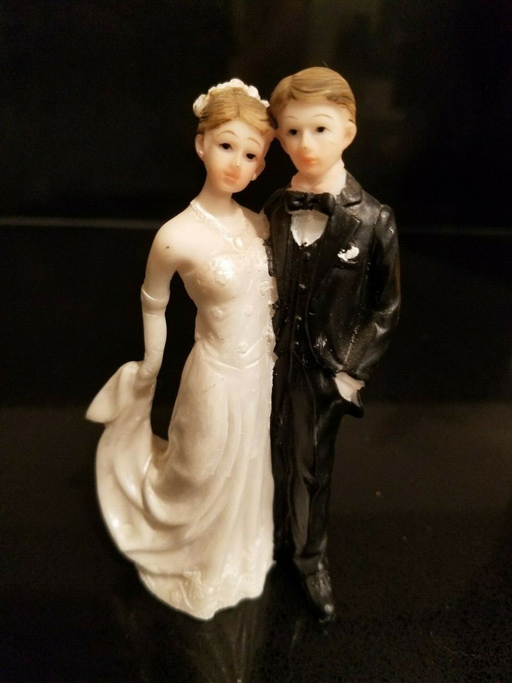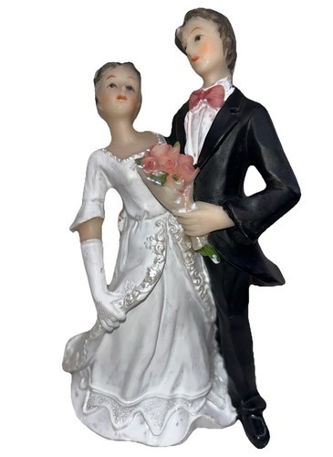Cake Topper Wedding Ceremony Bride and Groom Resin Cake Figurine 4 inch