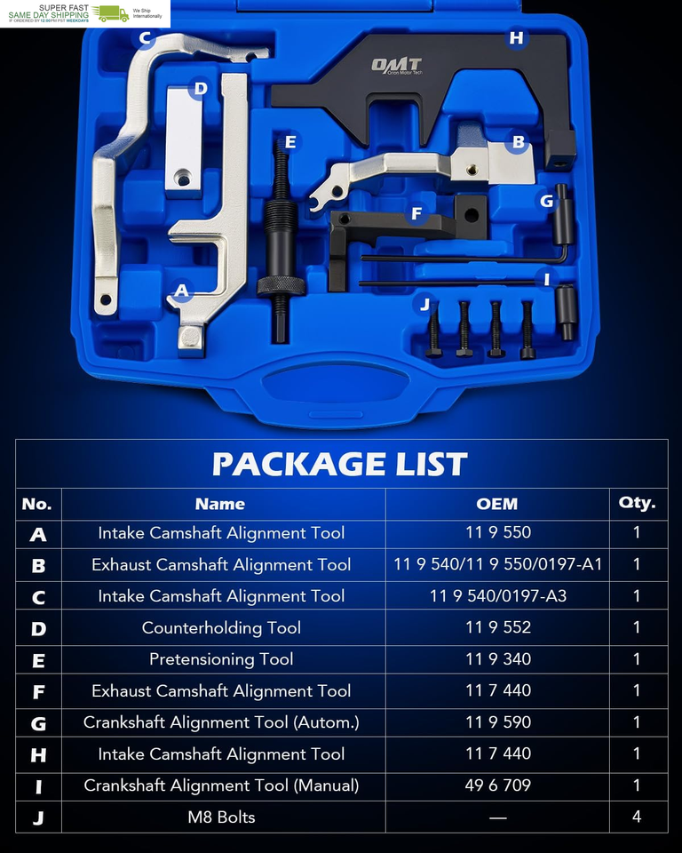 OEM Equivalent for Precise Alignment: Our camshaft holding tools fit both manual and automatic transmission vehicles, replacing part number 11 9 550, 11 9 540/11 9 550/0197-A1, 11 9 540/0197-A3, 11 9 552, 11 9 340, 11 7 440, 11 9 590, 11 7 440, 49 6 709