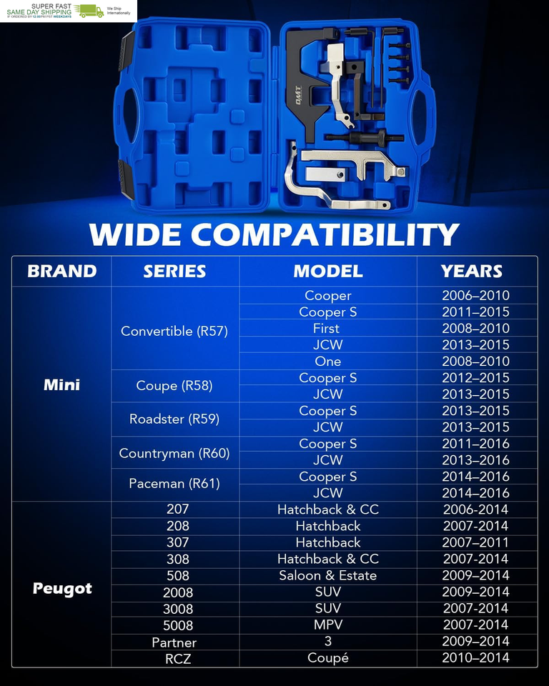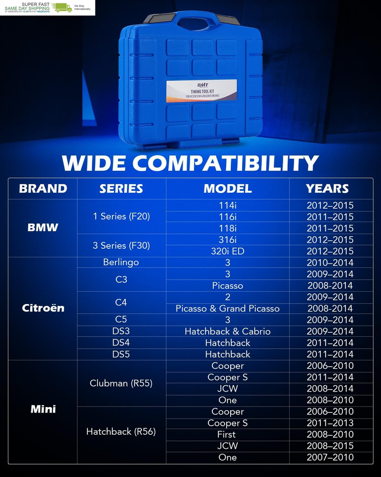 Compatible with Multiple Models: This engine camshaft alignment timing locking tool set works with N12, N13, N14, N16, N18, EP3, EP6 1.4L and 1.6L engines of a wide range of 2006 to 2015 BMW, Mini, Citroen, and Peugot models
