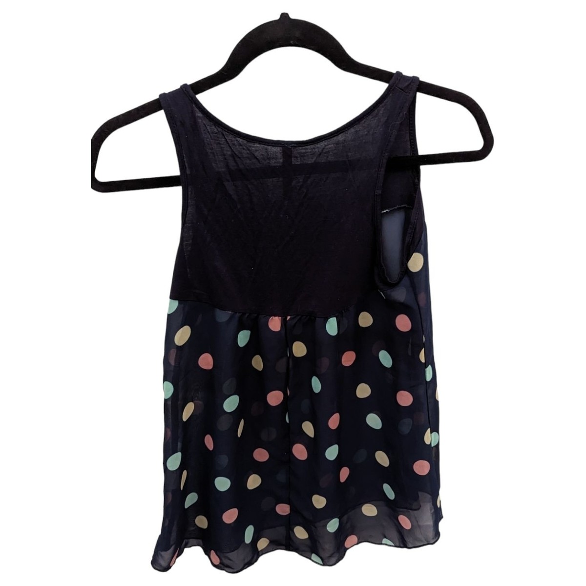 Womens Blue Sheer Polka Dot Racerback Tank Top Blouse Shirt Small S