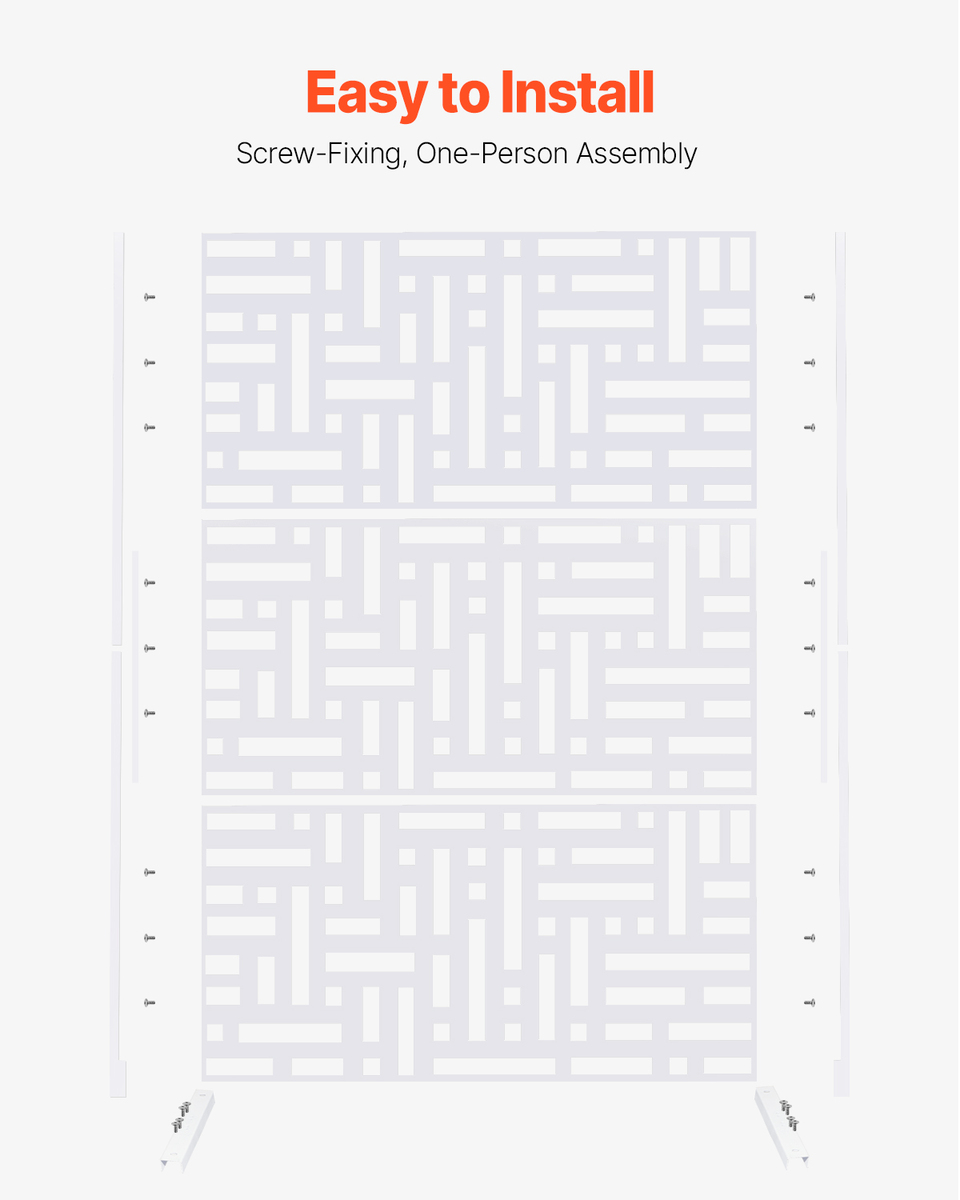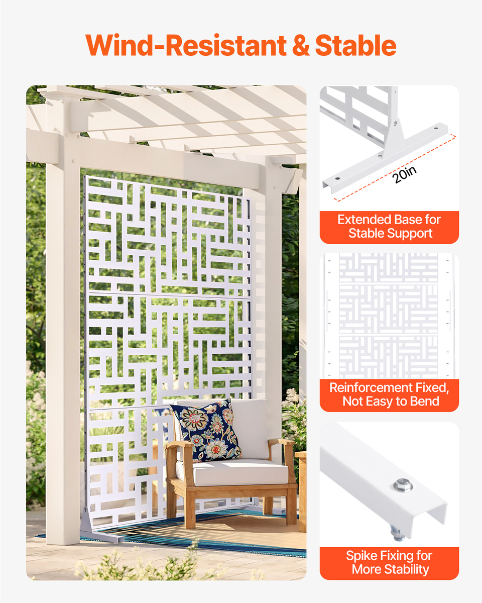 VEVOR Metal Privacy Screen, 47" W x 76" H Outdoor Privacy Screens 3-Panel White