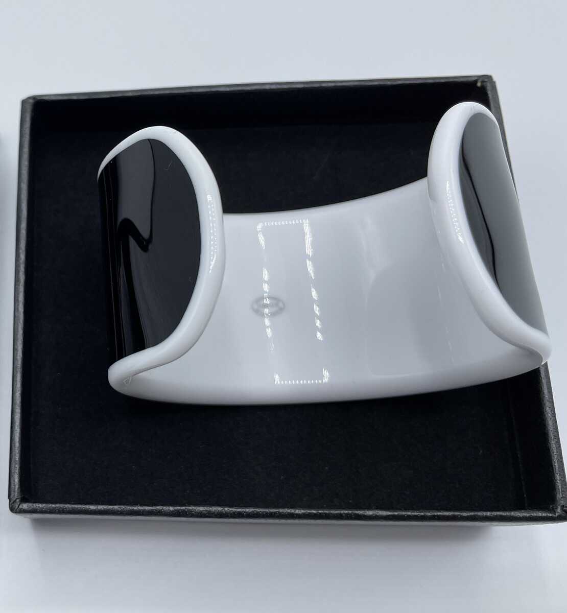CHANEL BLACK OUTSIDE WHITE INSIDE CC LUCITE SPORTY CUFF BRACELET.