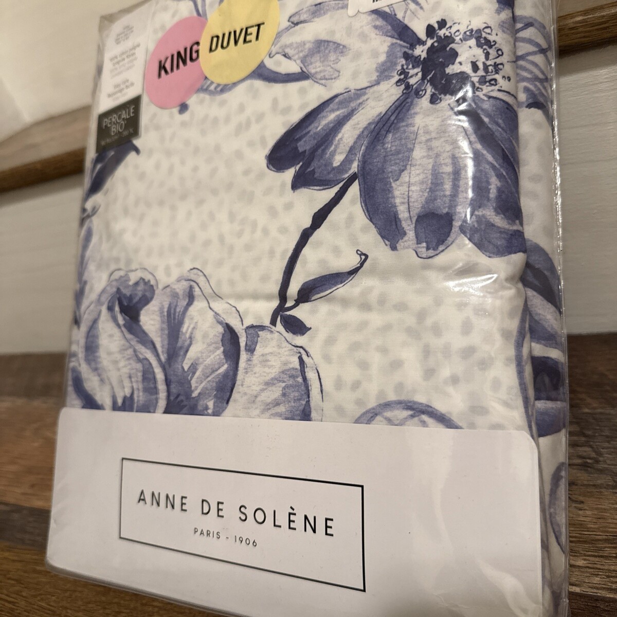 Anna De Solene Paris EGRRIE Floral Blue King Duvet Cover ~New~