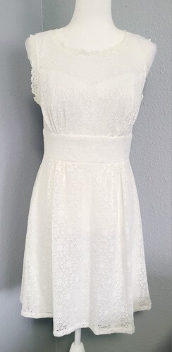 Net Women's A Line Dress Size 6 Cream Crochet Lace Zip Up Short Sleeve Ruffles