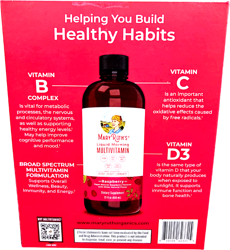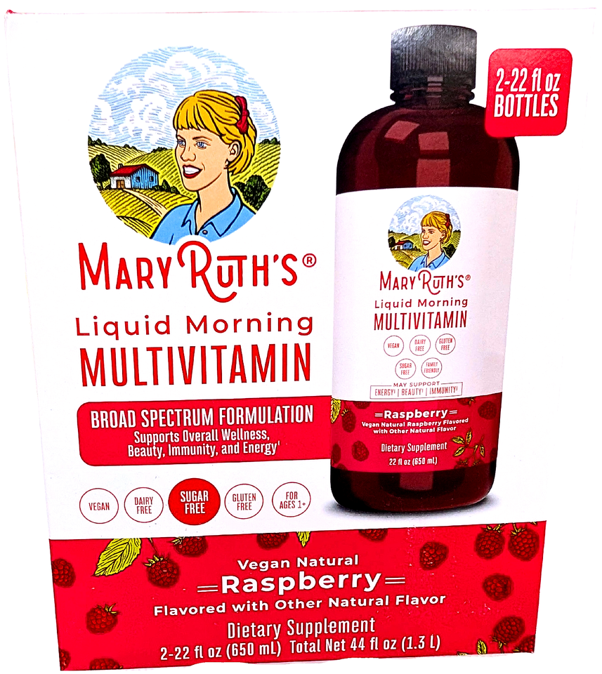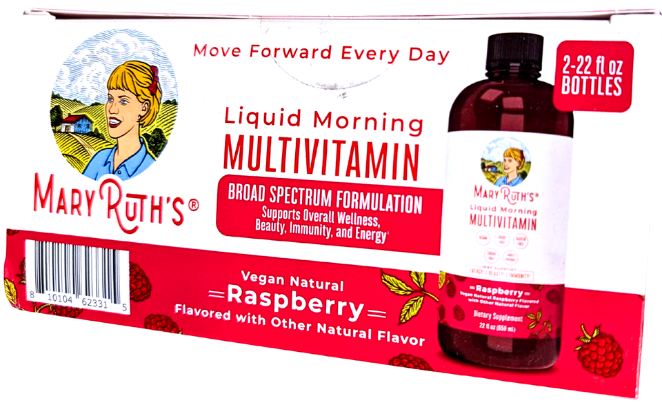 MaryRuth's Liquid Morning Multivitamin Raspberry 2 x 22 Fl Oz Bottles EXP 06/27