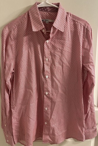 Mr Turk Long Sleeve Button Down Mens Dress Shirt Sz Small Pattern pink Red EUC