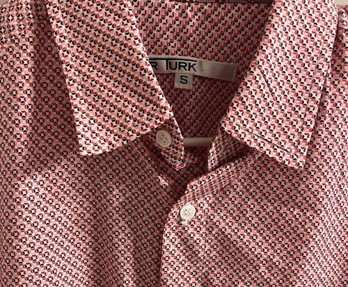Elevate your wardrobe with this stylish Mr Turk dress shirt, available in a stunning pink and red pattern. The button-down collar and long sleeves add a classic touch. Perfect for any occasion, this shirt is a must-have for any fashion-forward man.