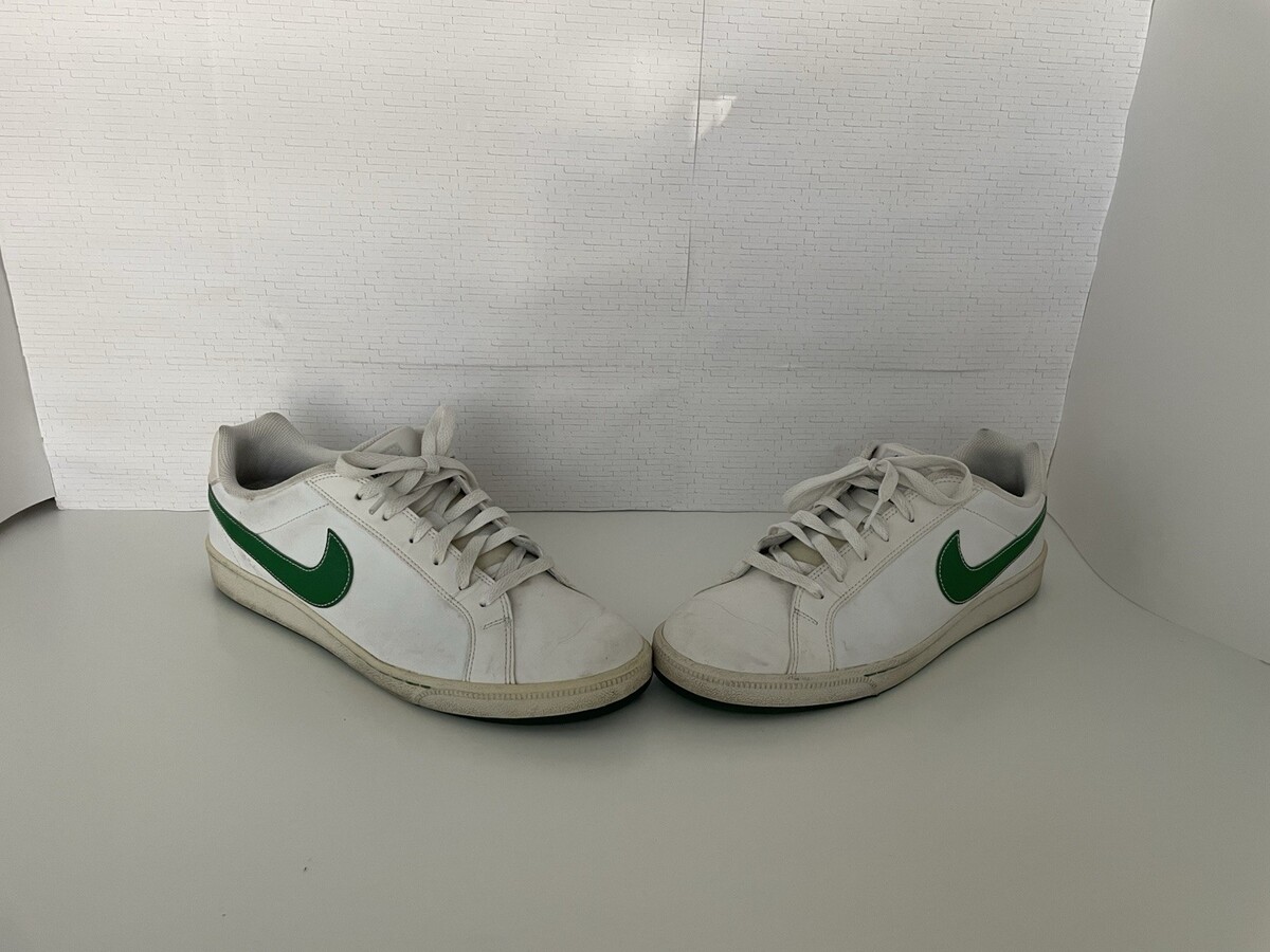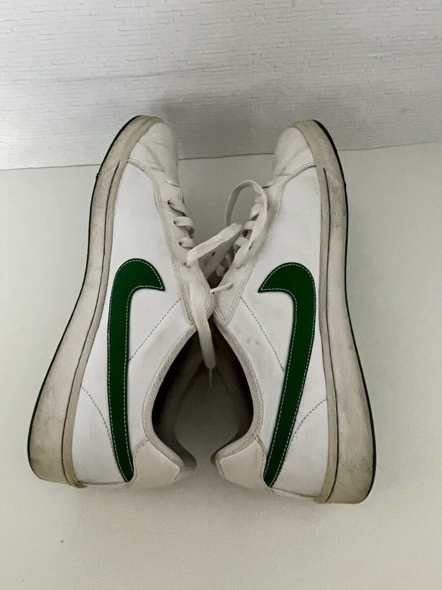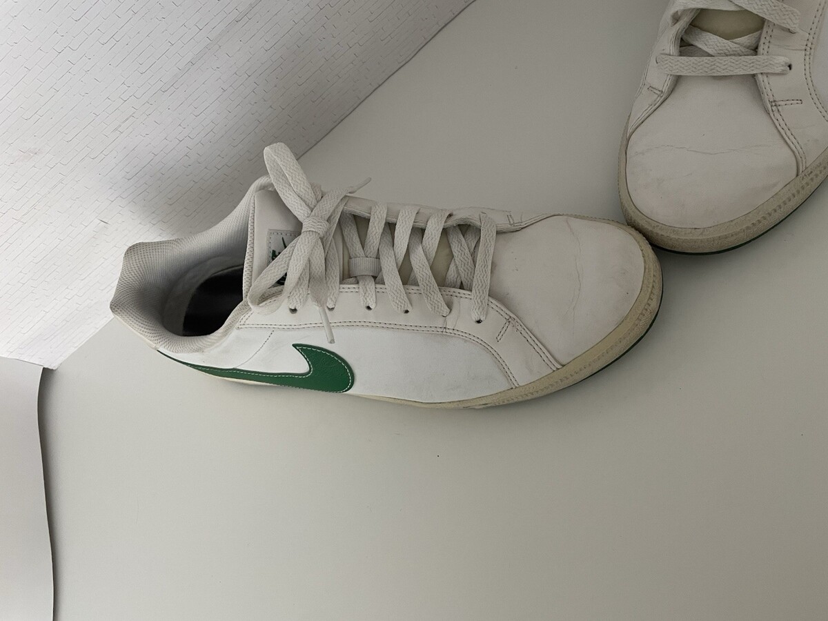 The Nike FJ Dryjoys Tour Shoes in Men's Size 11.5 feature a classic design with a green sole and green Swoosh, making them a stylish choice for athletic wear. These sneakers have a low top shaft style, solid color pattern, and standard shoe width, making them comfortable for everyday wear. The leather upper material and standard shoe width provide durability and a secure fit, while the Court Majestic product line adds a touch of elegance to the overall design. Ideal for men who appreciate quality and style in their footwear.