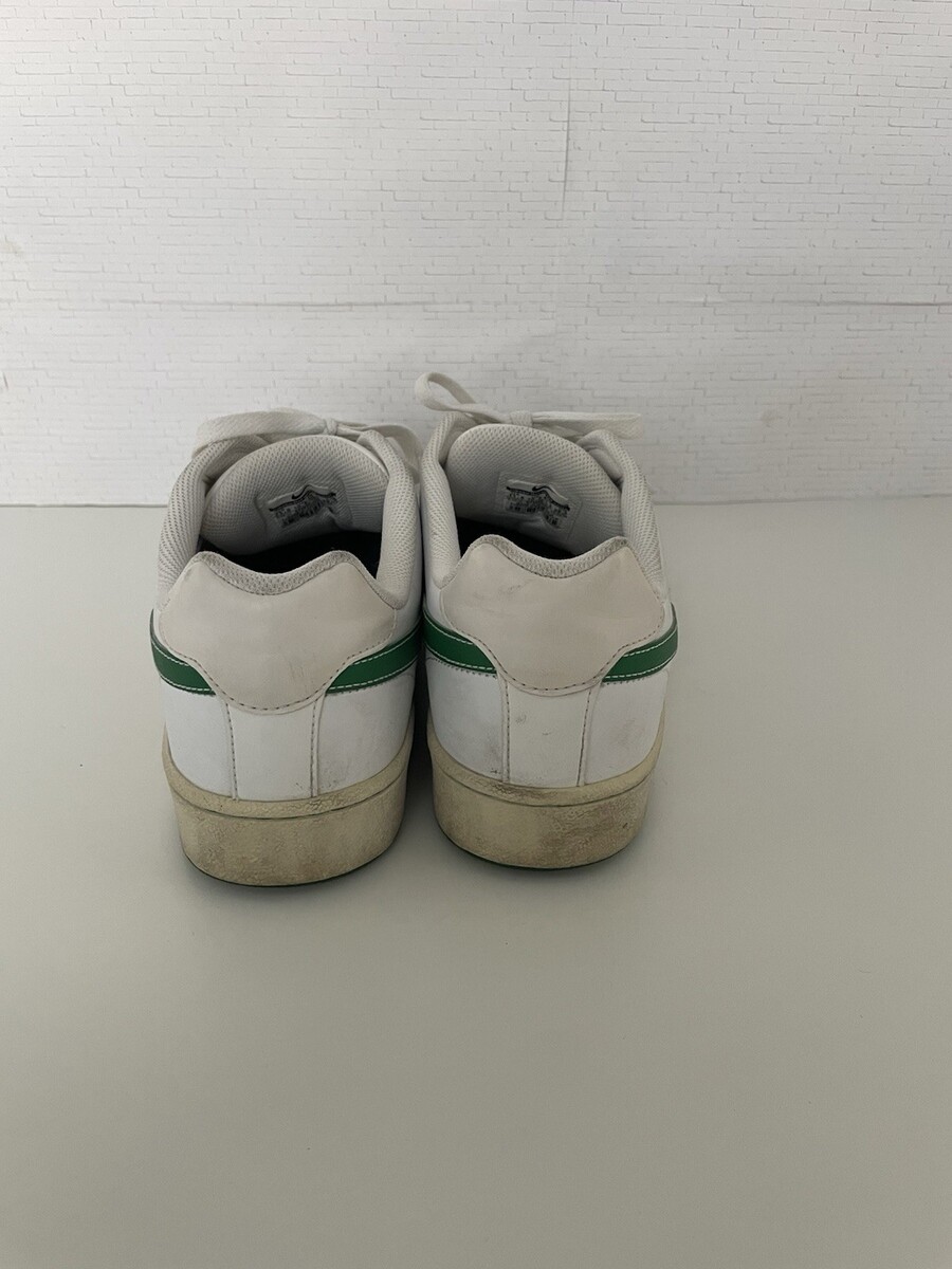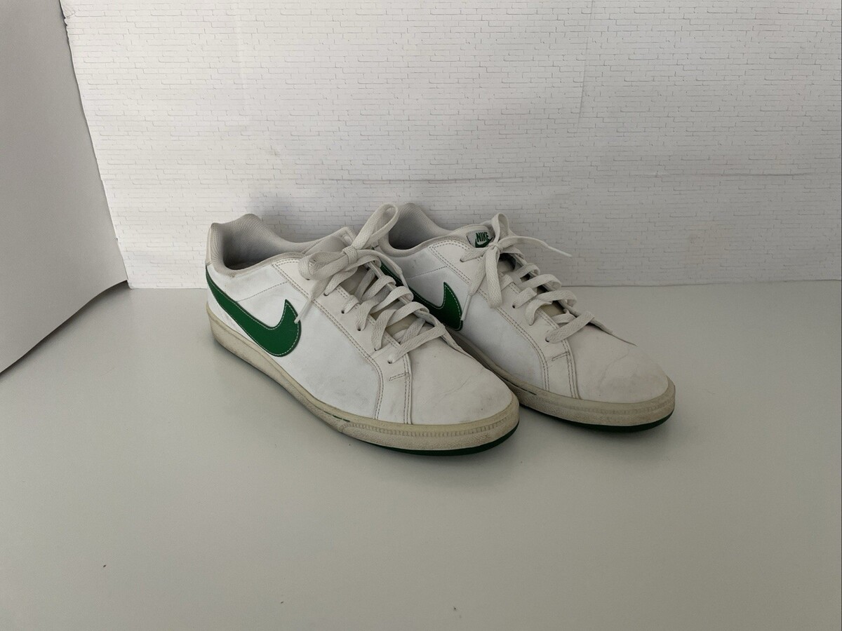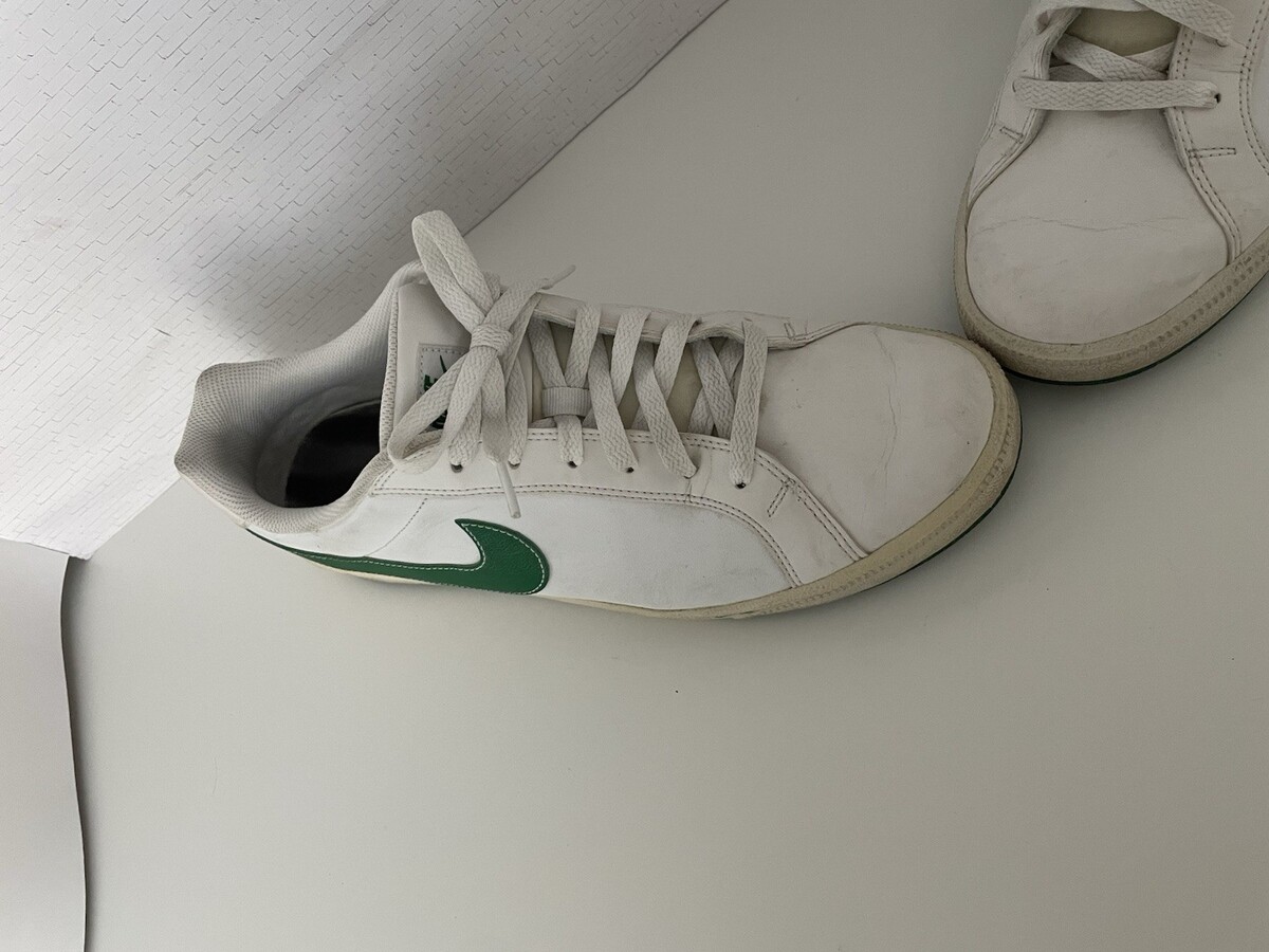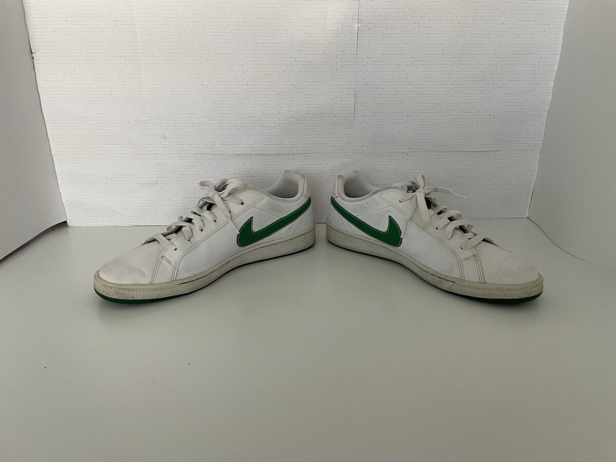 The Nike FJ Dryjoys Tour Shoes in Men's Size 11.5 feature a classic design with a green sole and green Swoosh, making them a stylish choice for athletic wear. These sneakers have a low top shaft style, solid color pattern, and standard shoe width, making them comfortable for everyday wear. The leather upper material and standard shoe width provide durability and a secure fit, while the Court Majestic product line adds a touch of elegance to the overall design. Ideal for men who appreciate quality and style in their footwear.
