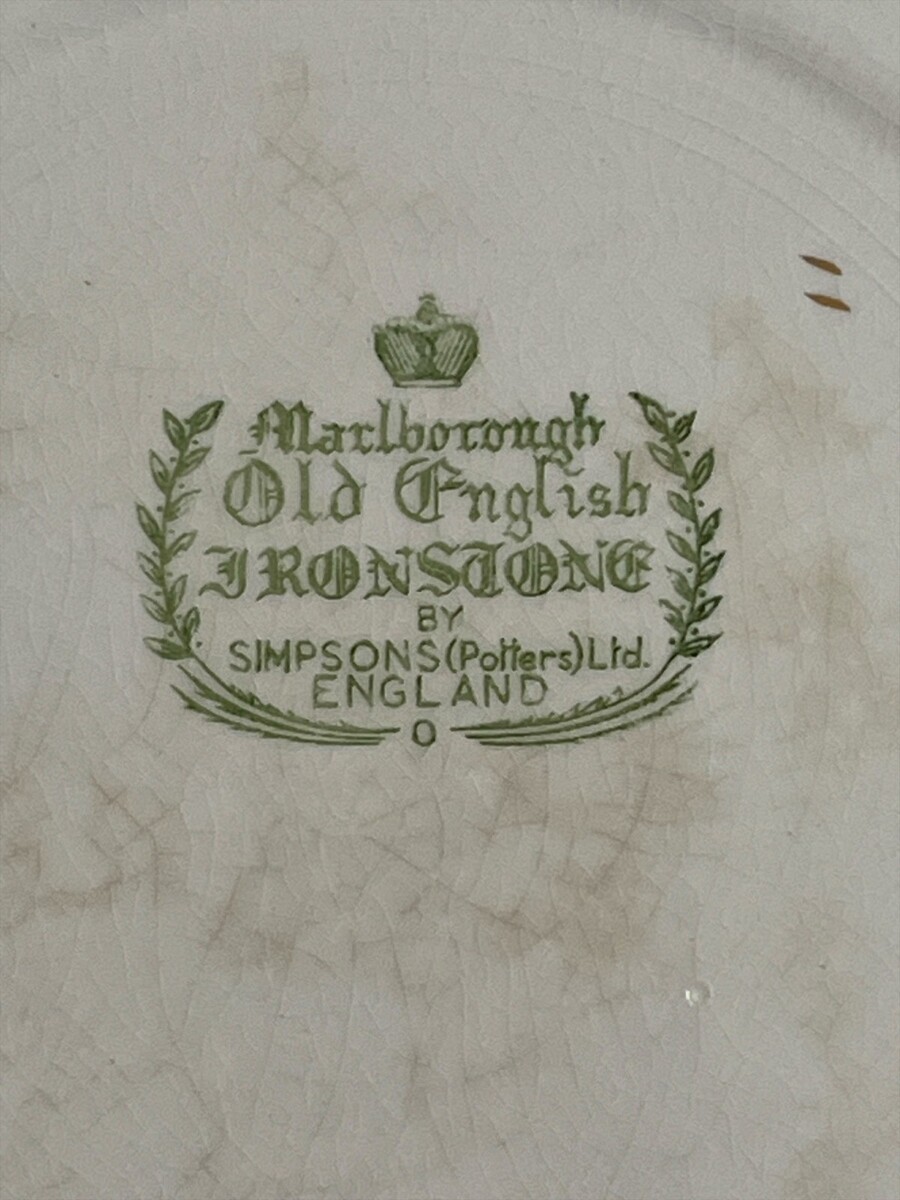 Good vintage condition. No cracks or chips observed. Age-related crazing throughout and light discoloration consistent with vintage ironstone. Gold trim shows minor wear.