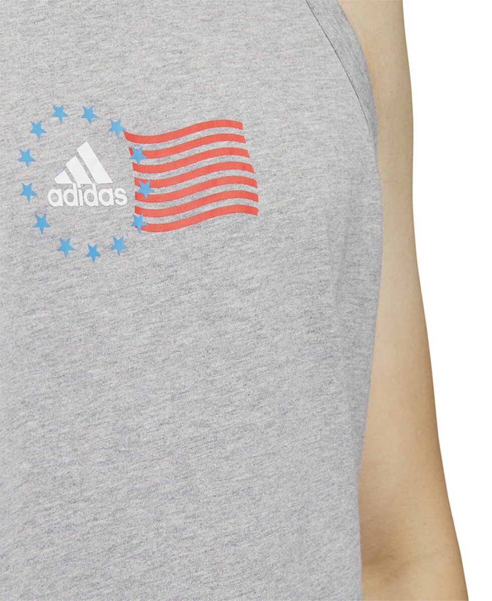 Ultra-soft and lightweight, this sleeveless top from adidas features crewneck styling and an American flag graphic at the front.CrewneckSleevelessAmerican flag graphic and logo at frontAll cottonMachine washableImported
