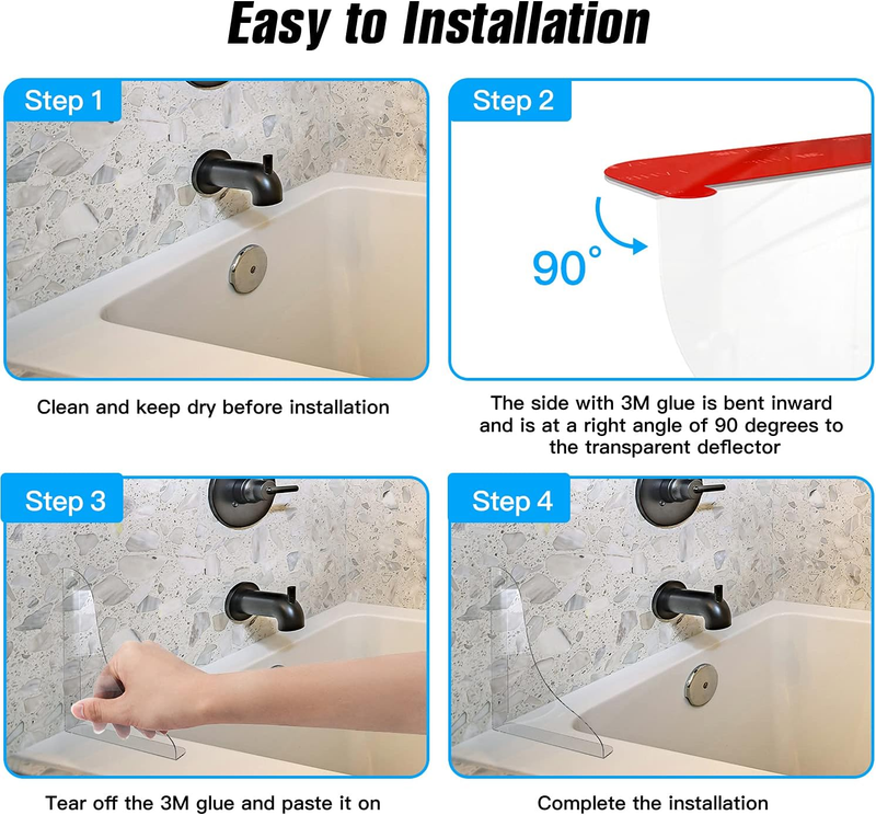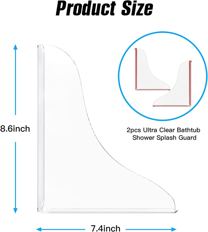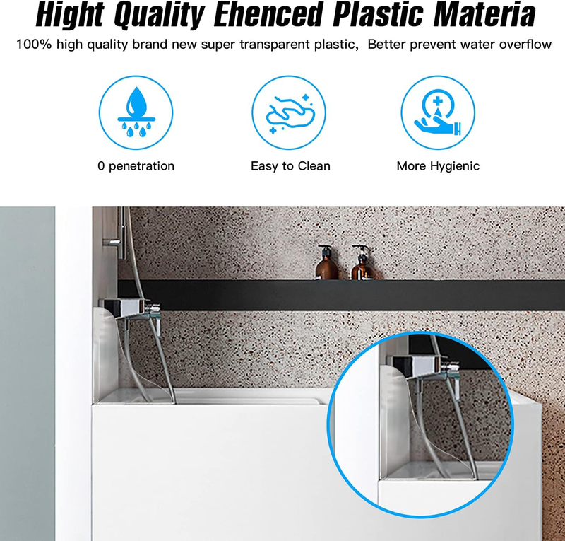 2 Pieces Bathtub Shower Splash Guard, Bathroom Bath Tub Splash Guards with 3M Su