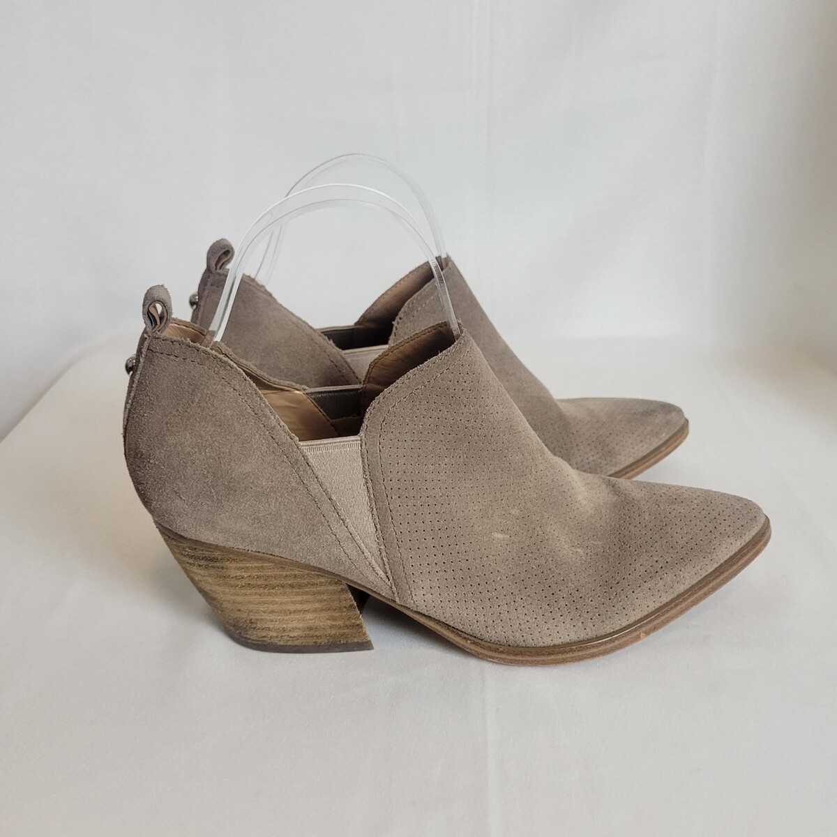 MARC FISHER Dalar Light Brown Suede Slip On Ankle Boots Booties 9 Women Stacked