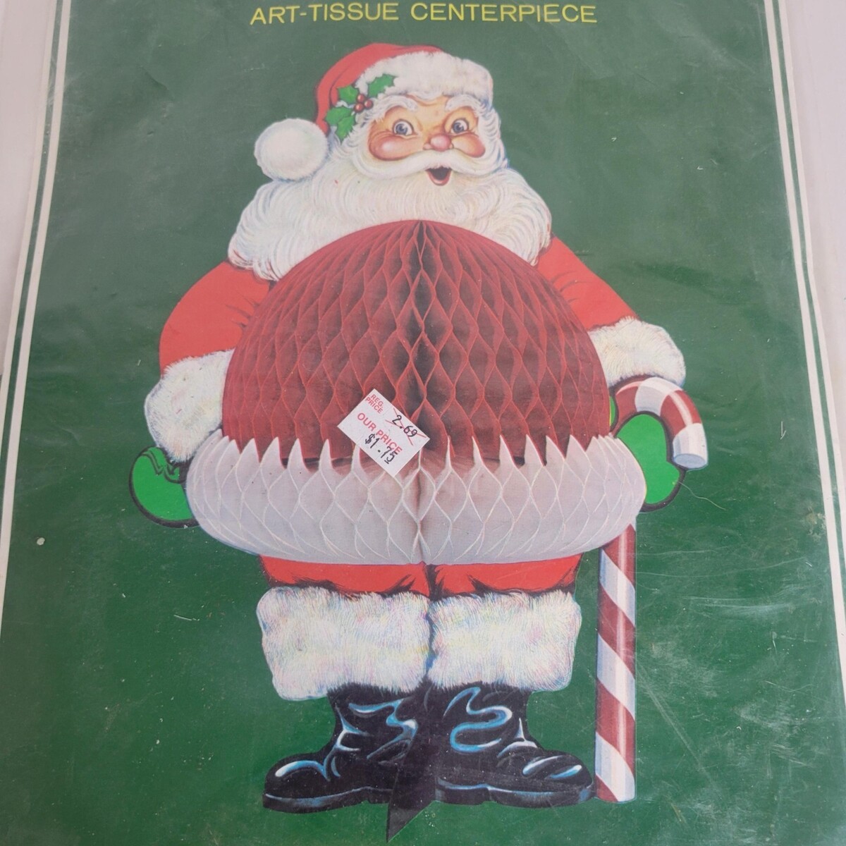 VTG Beistle Christmas Art Tissue Santa Centerpiece Honeycomb Belly 197813" Tall